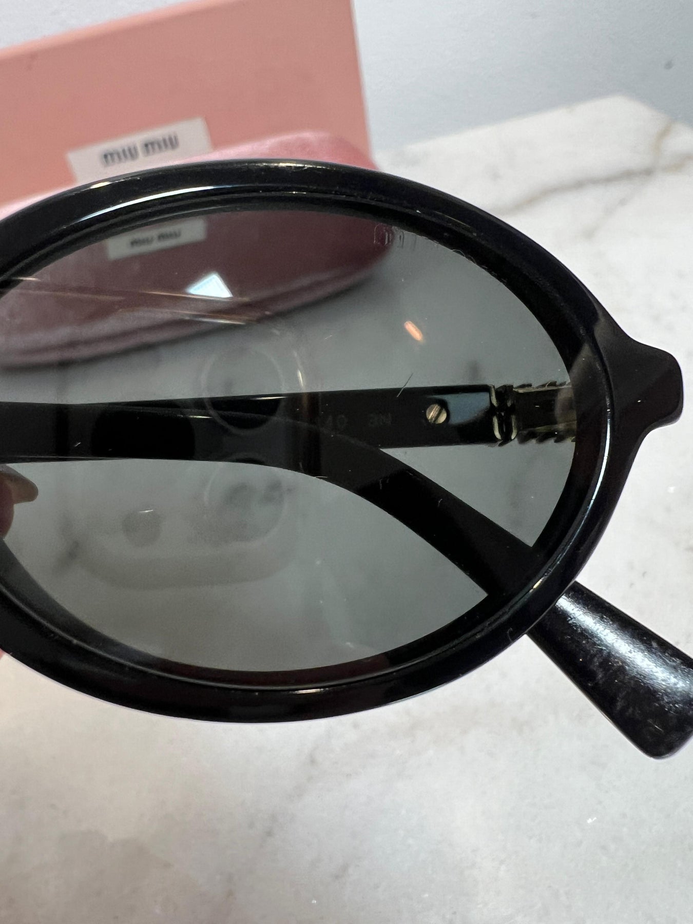 Description : RRP $465, comes with dust bag, case and box, condition- scratch left lens, mild wear on temples