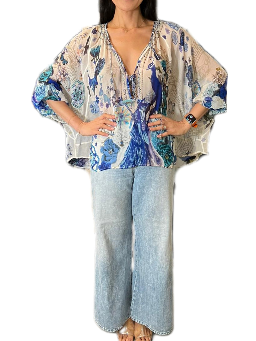 Description : BNWT, 100% silk, colour: white side of the moon, blue/ white