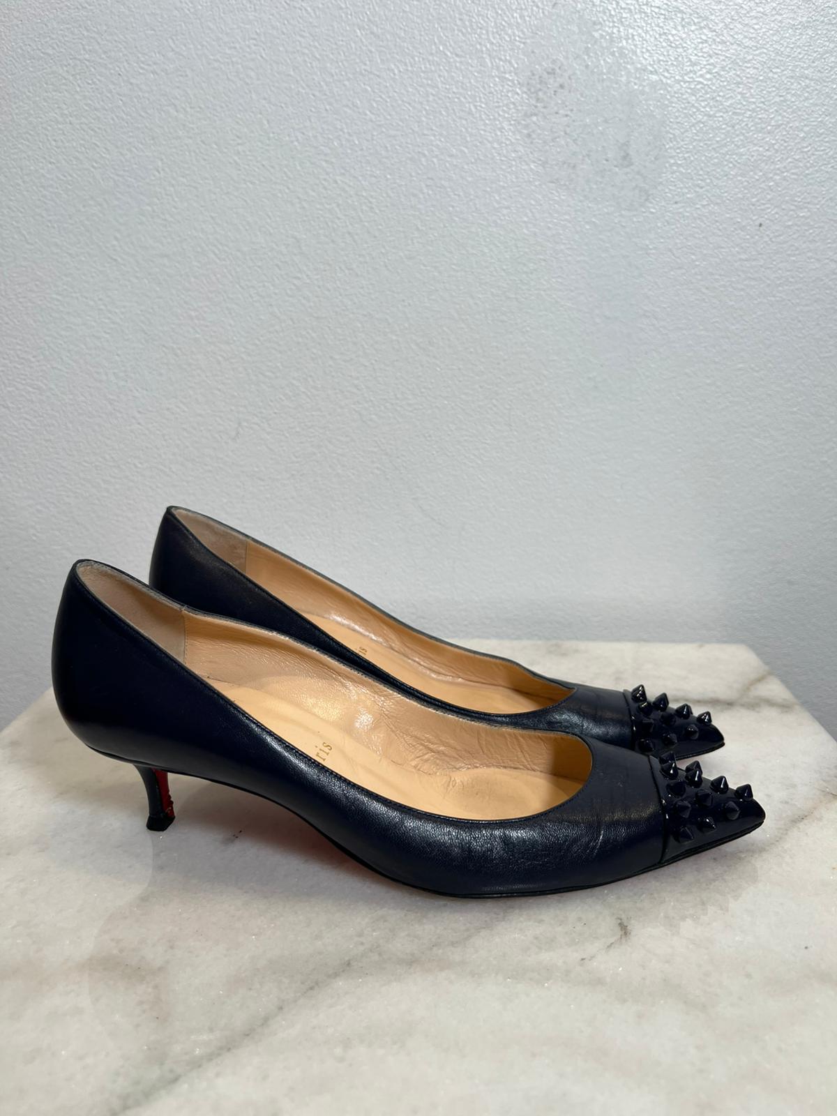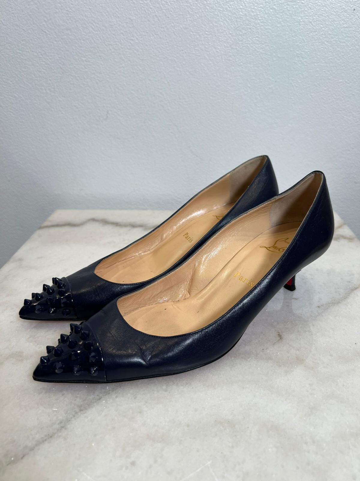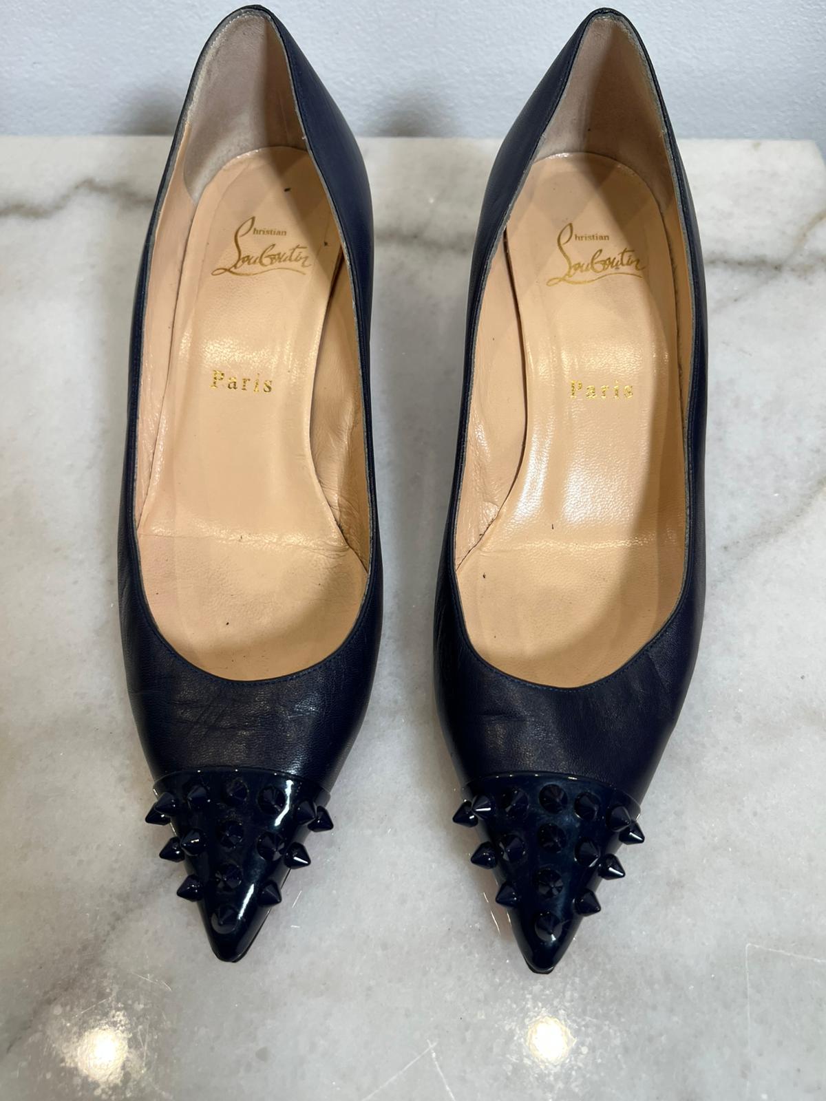 Christian Louboutin Cabo Navy Leather Kitten Heels - size 38 1/2