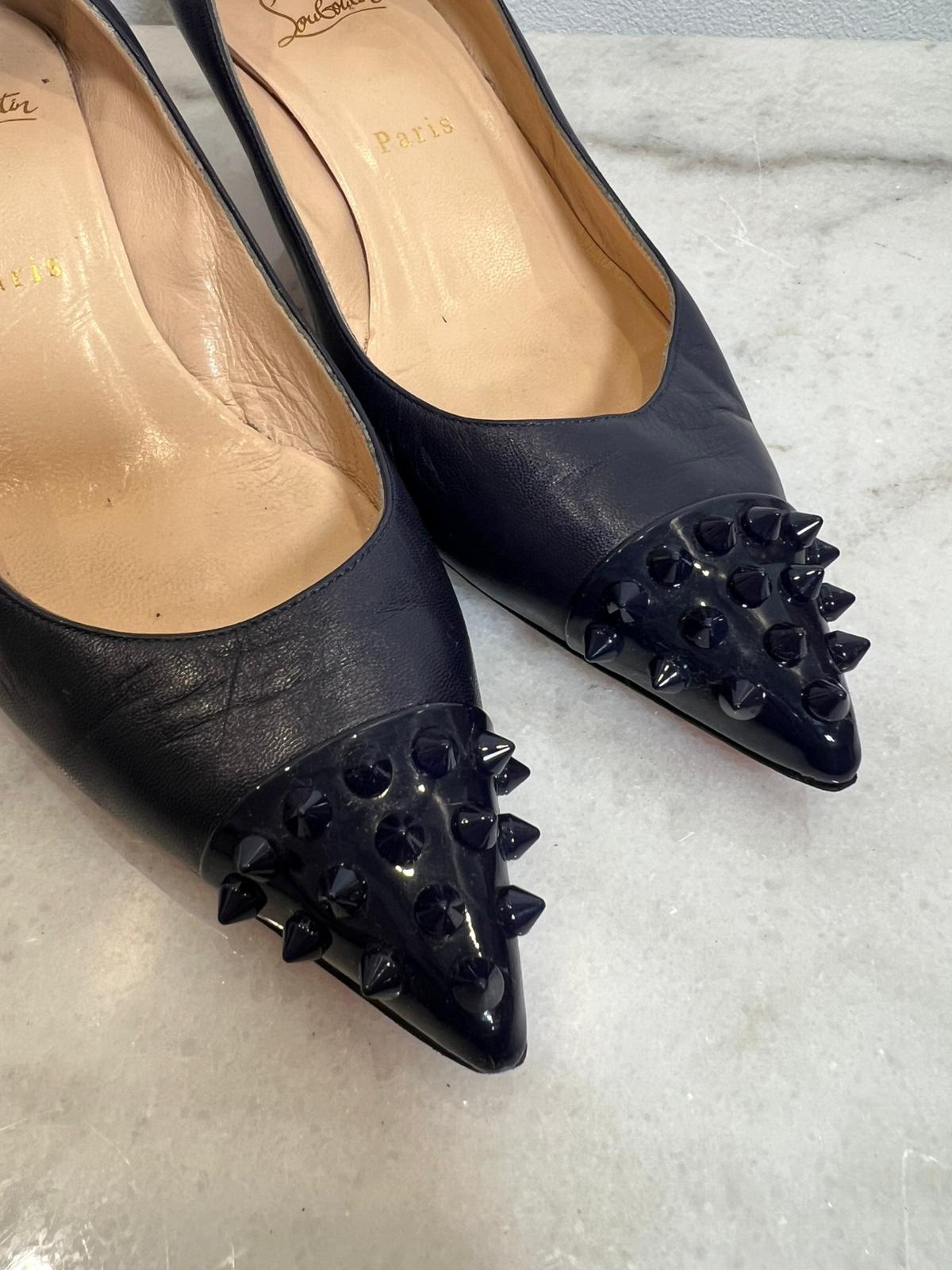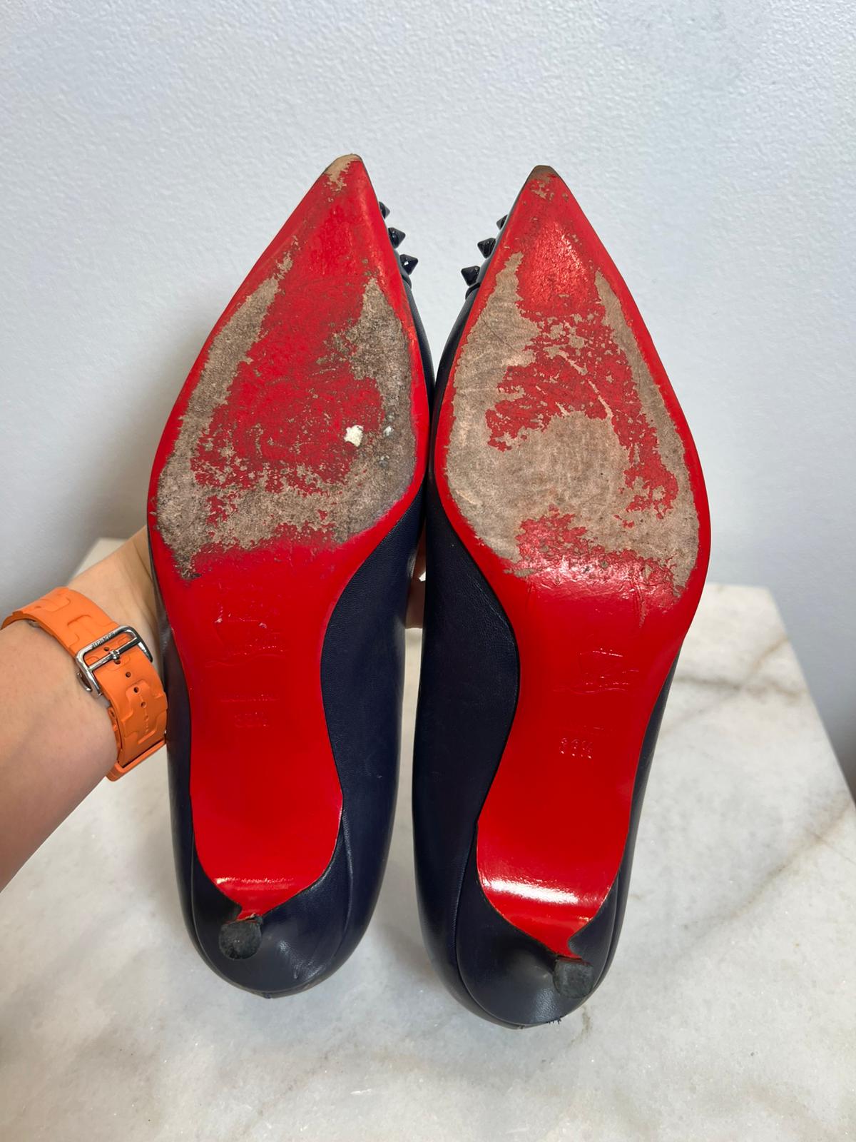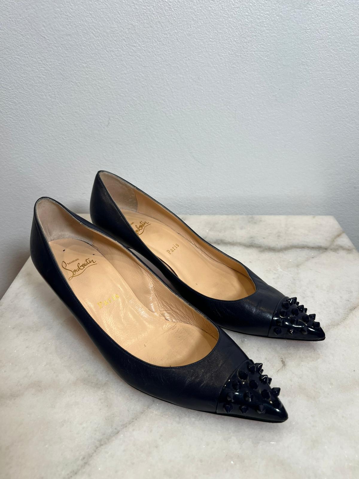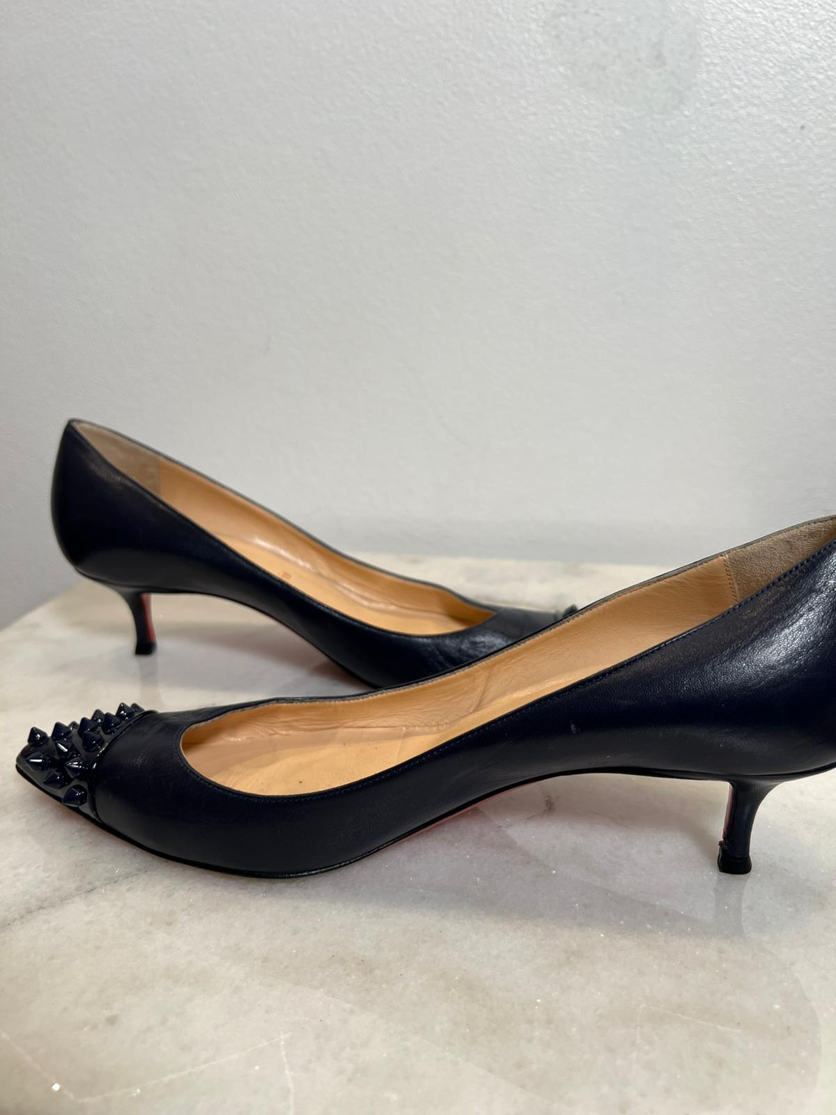 Christian Louboutin Cabo Navy Leather Kitten Heels - size 38 1/2