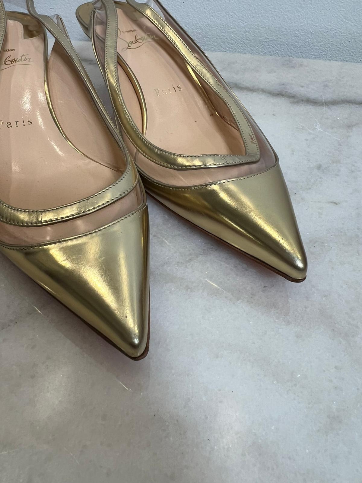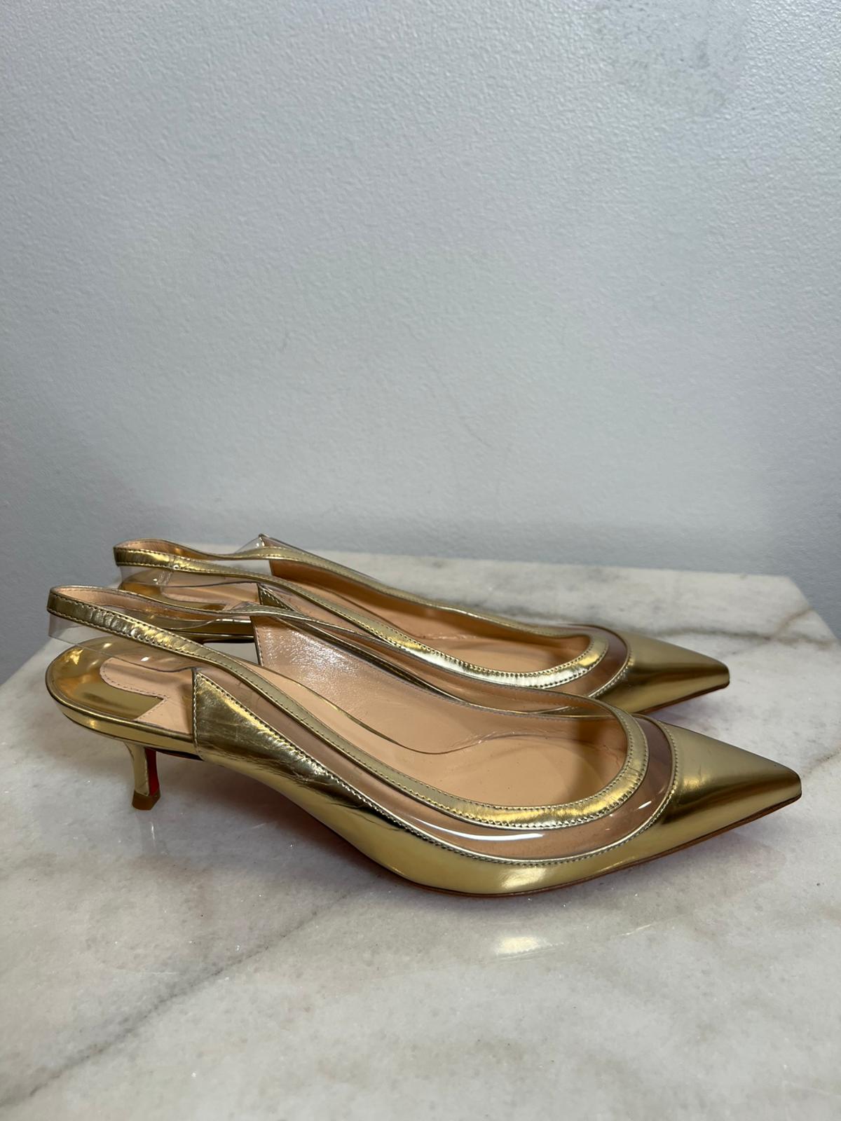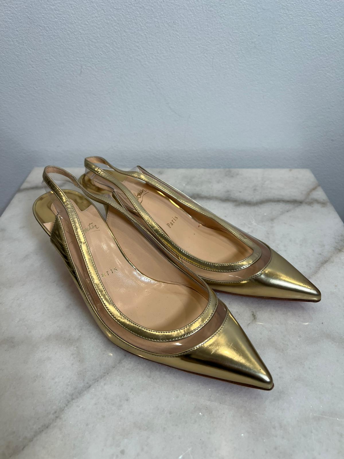 Christian Louboutin Gold Slingback Kitten Heels - size 39