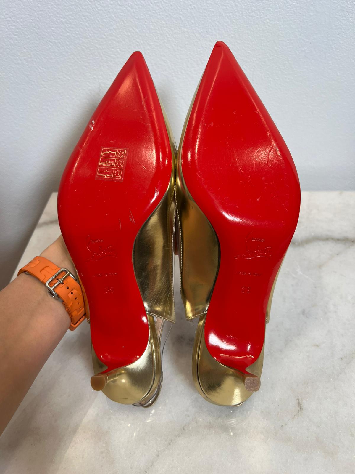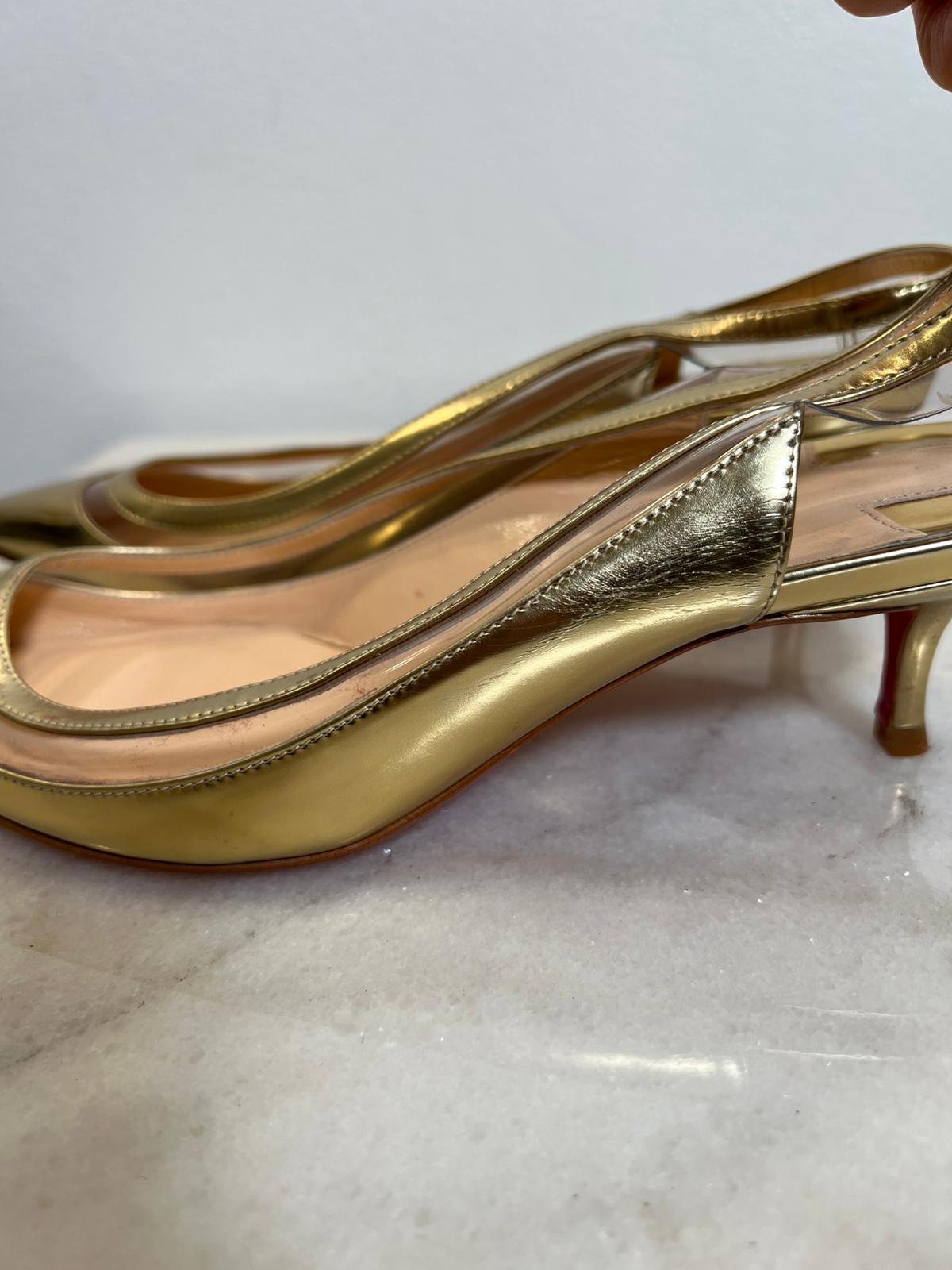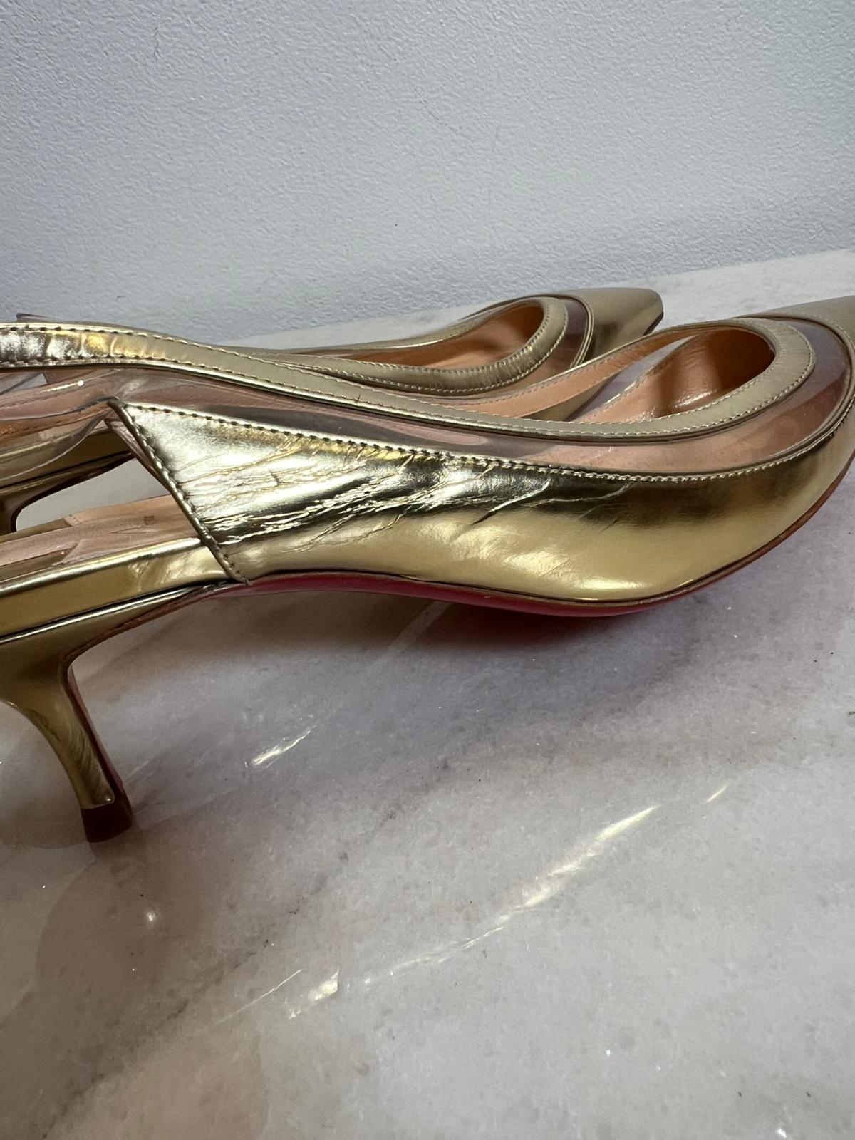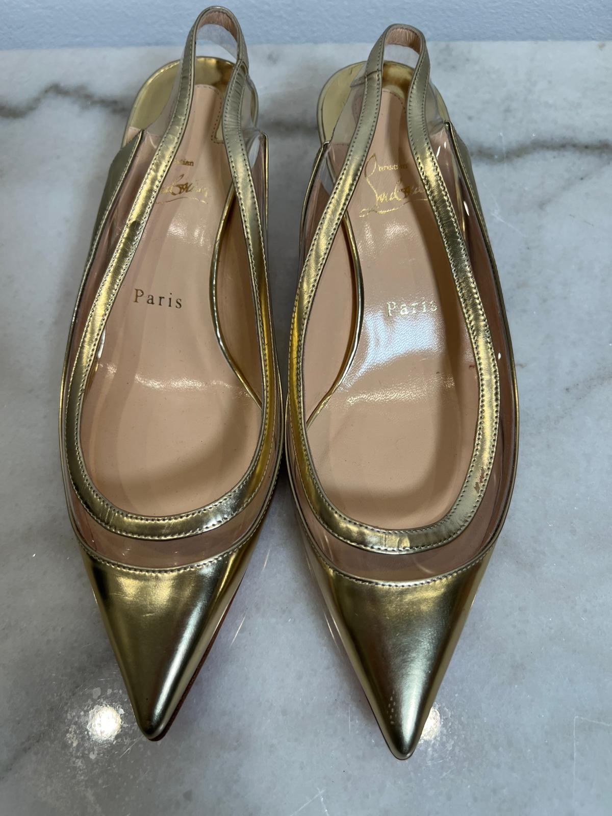 Christian Louboutin Gold Slingback Kitten Heels - size 39