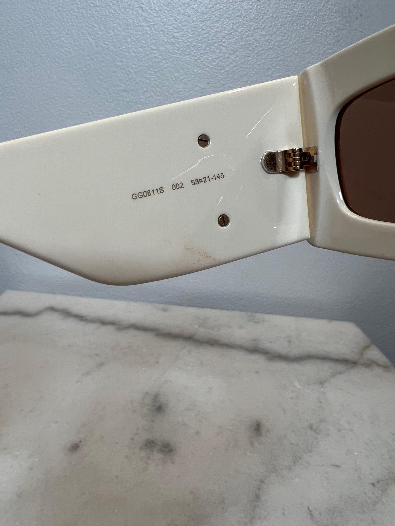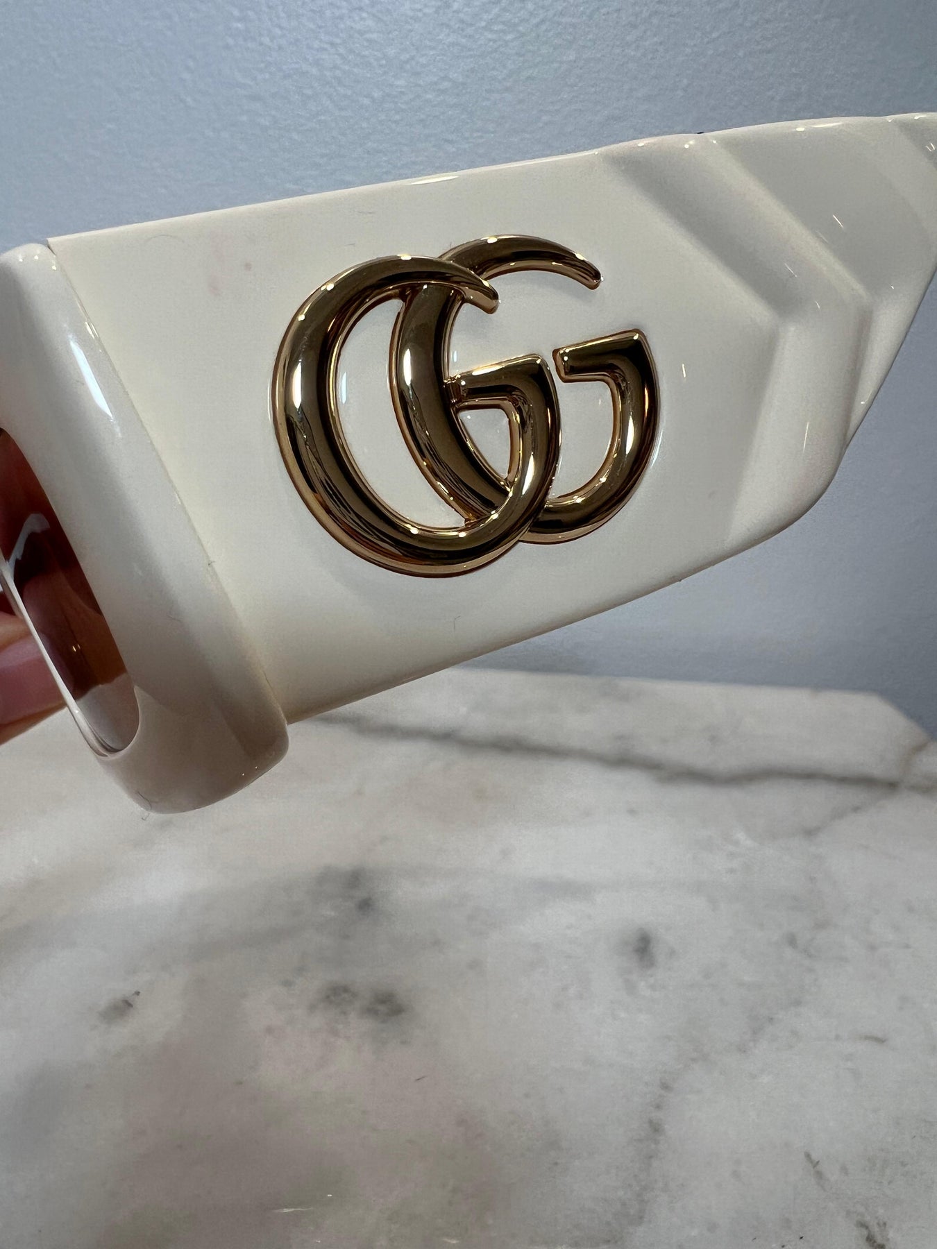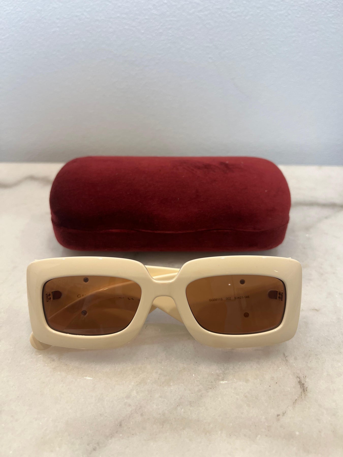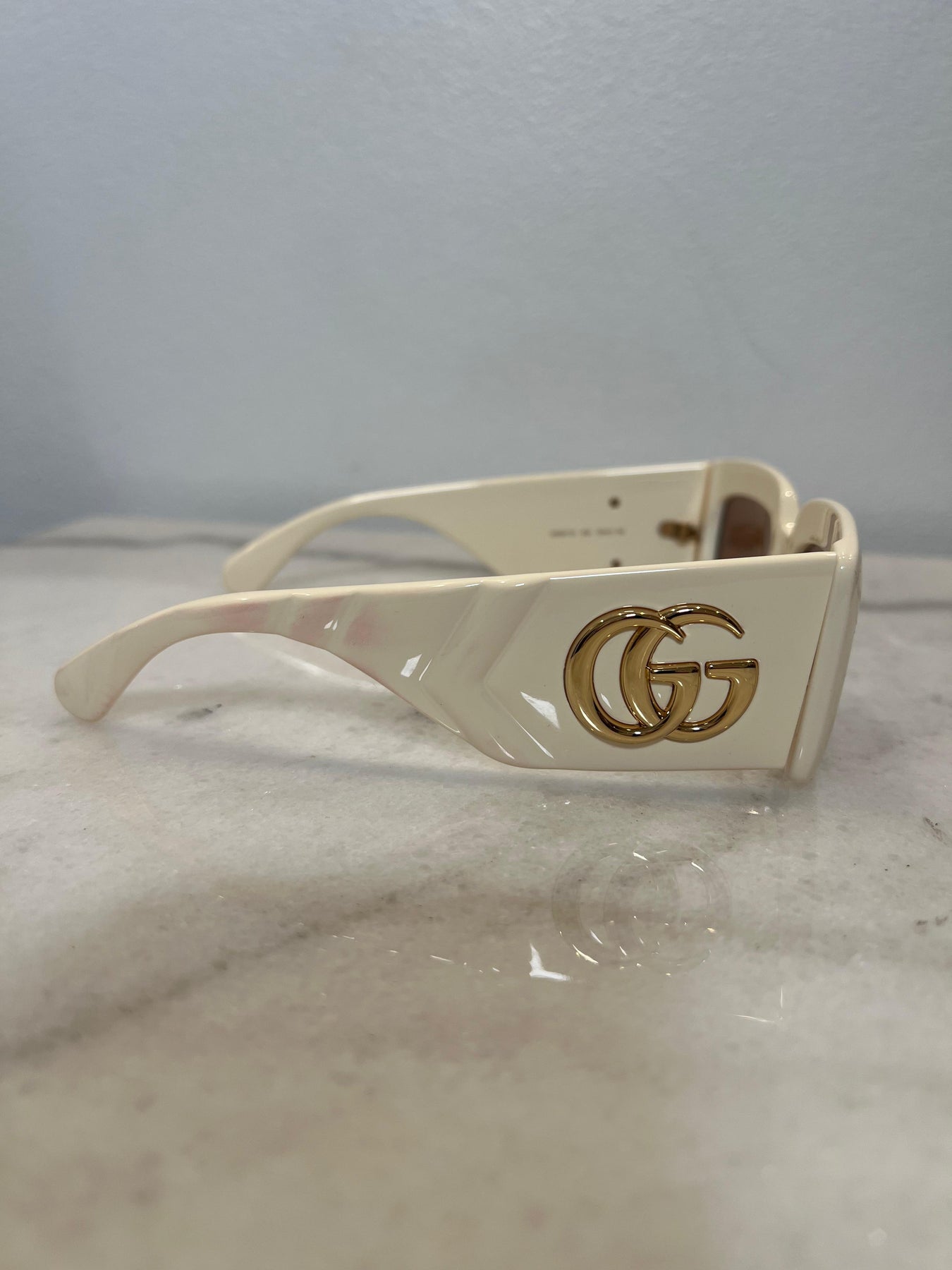 Gucci Off White Rectangle Marmont GG Sunglasses