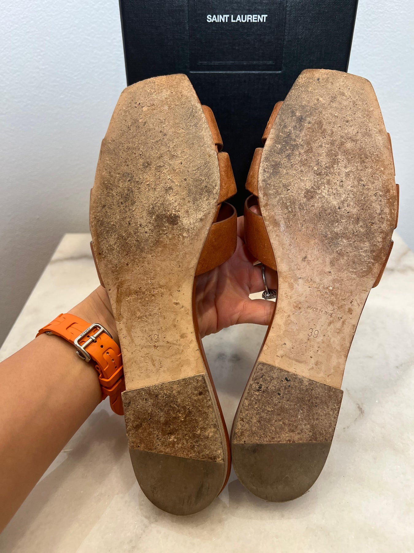 Description : with dust bag and box, condition 8/10, L- scratches on front inner leather, scuffs at front of shoe, marks/ discolouration of leather, RRP $1210