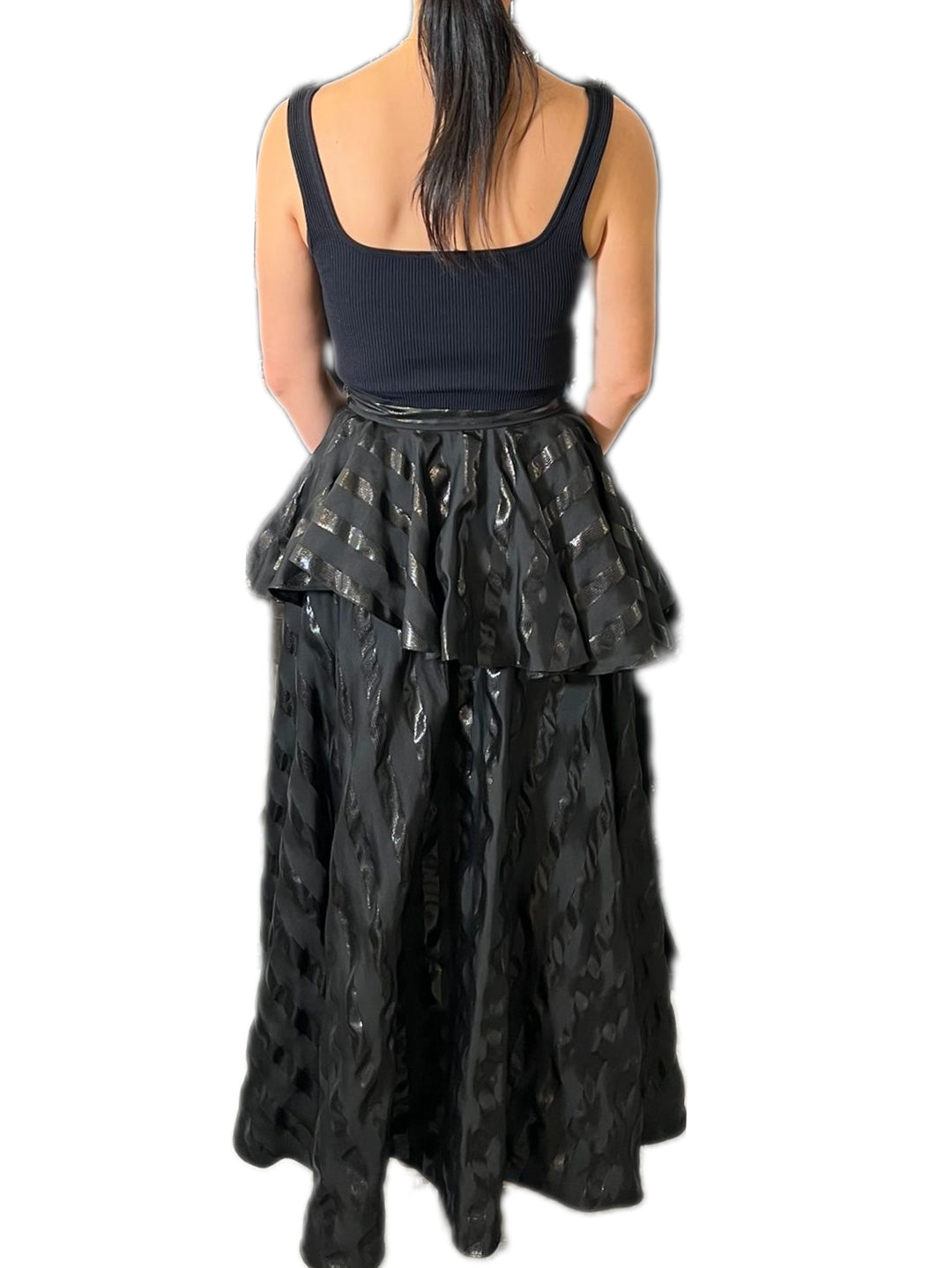 Description : Black, 44% polyester 44% viscose rayon, 12% metallic, lining 100% polyester