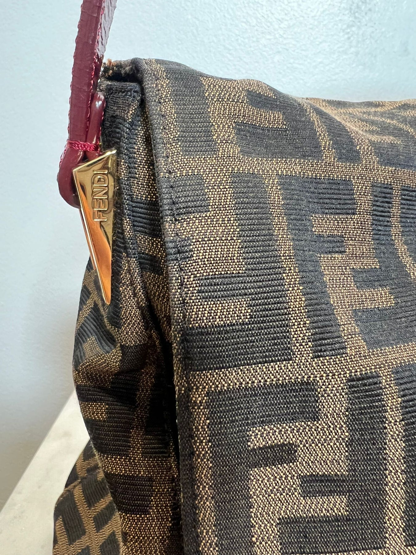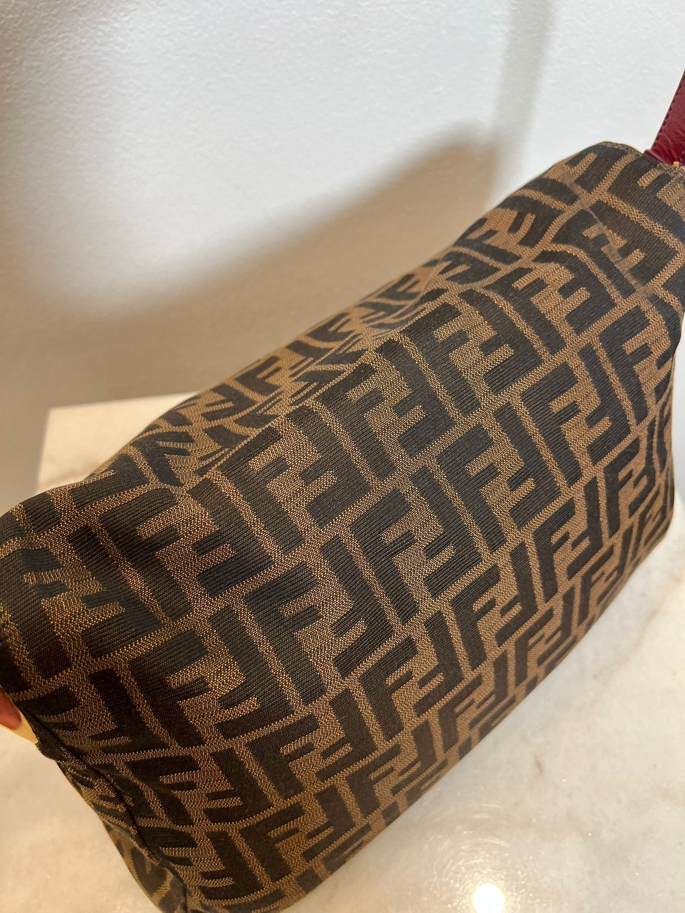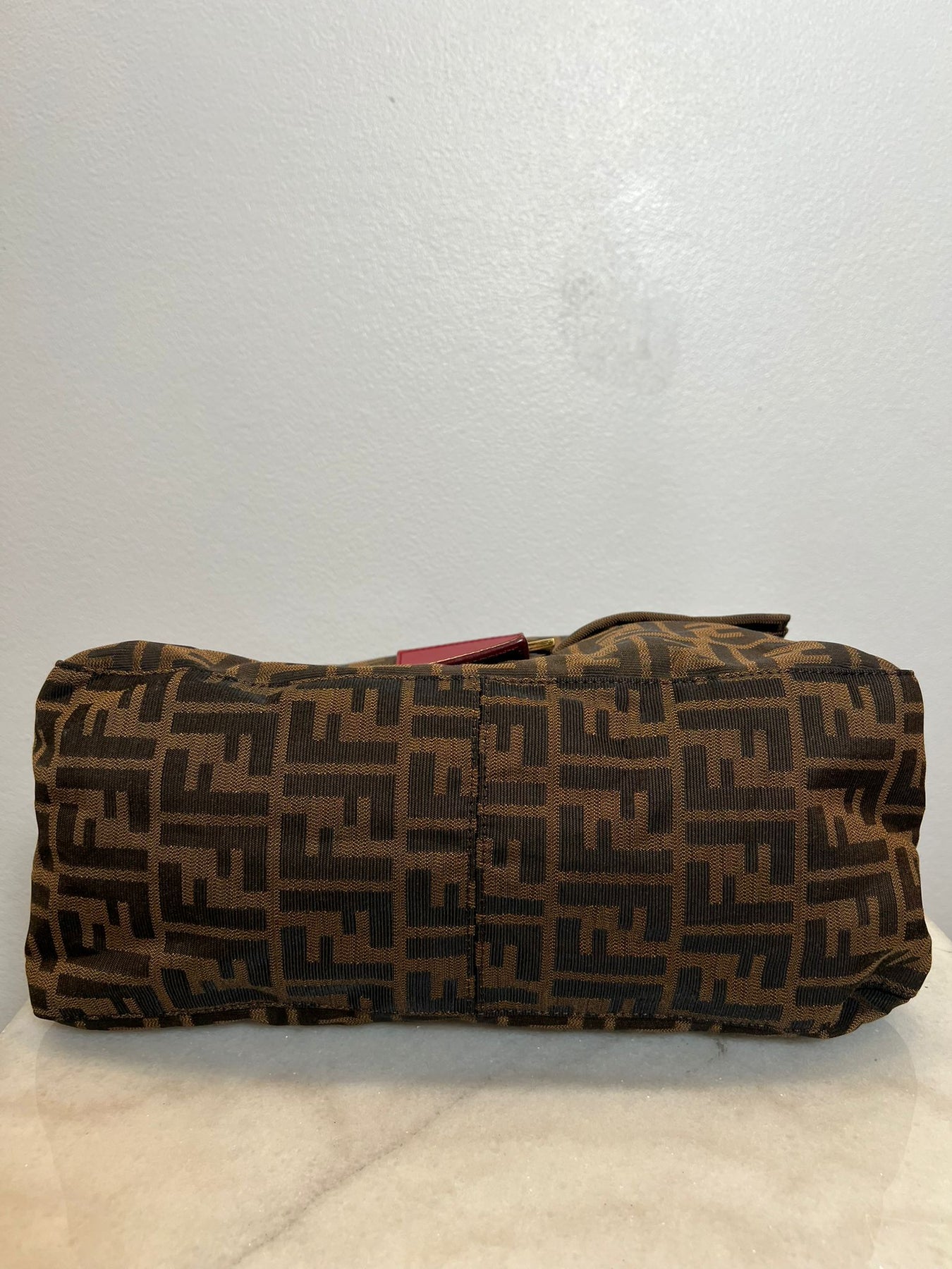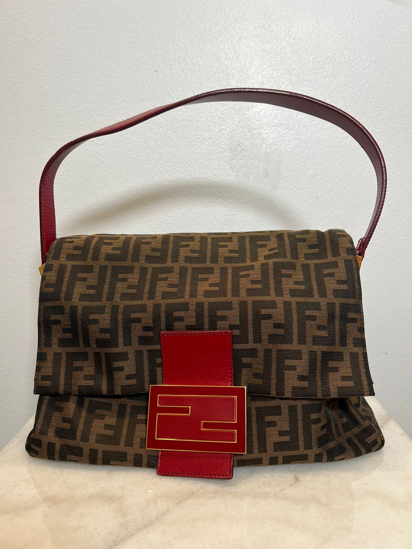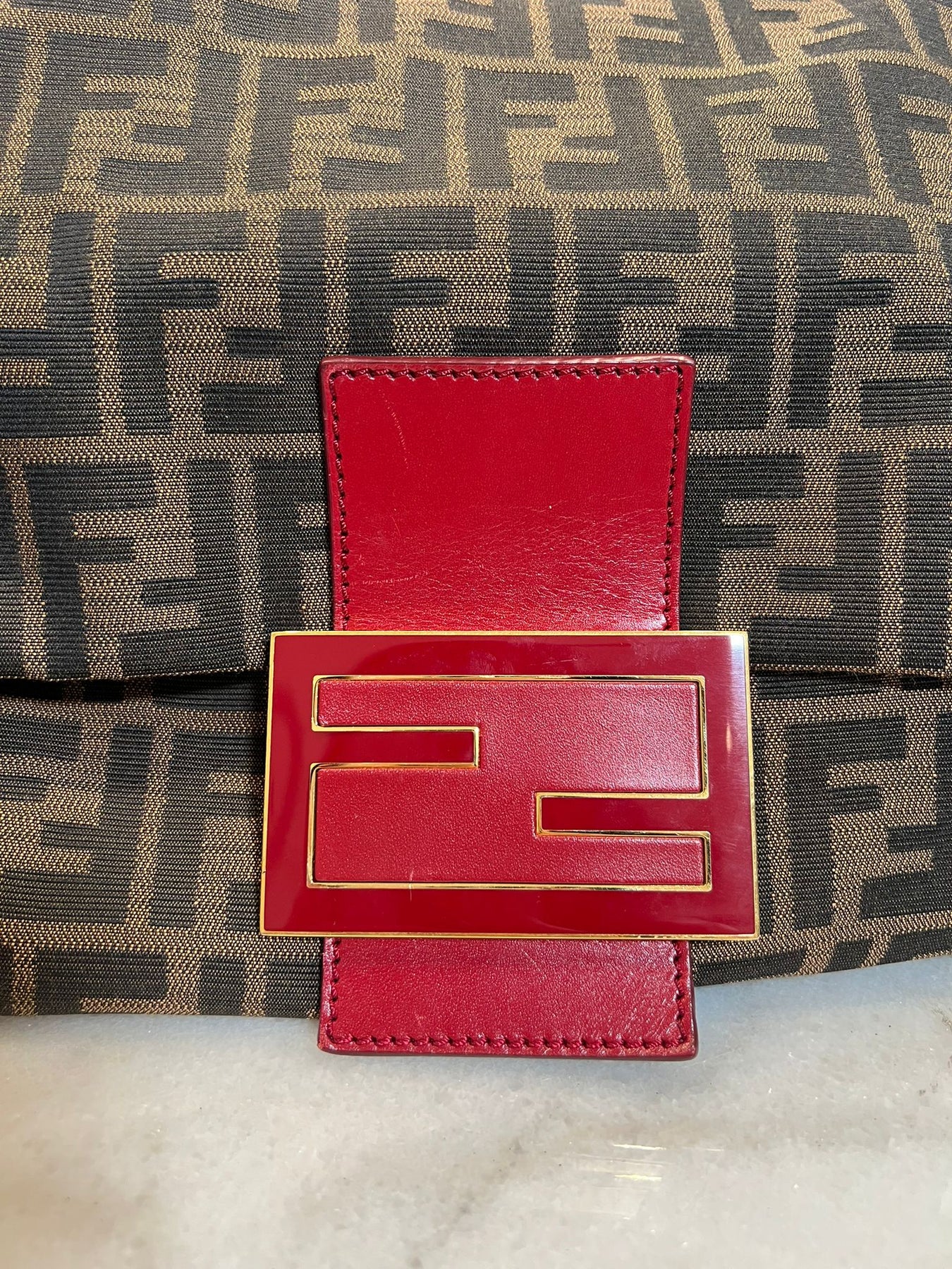Fendi Zucca Baguette Mamma Shoulder Bag with Red Leather
