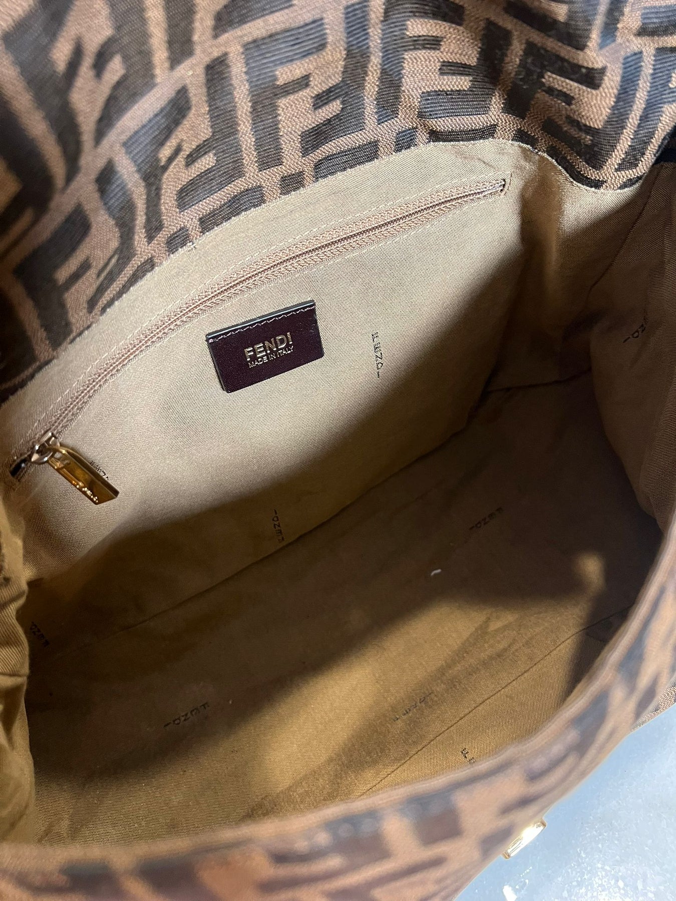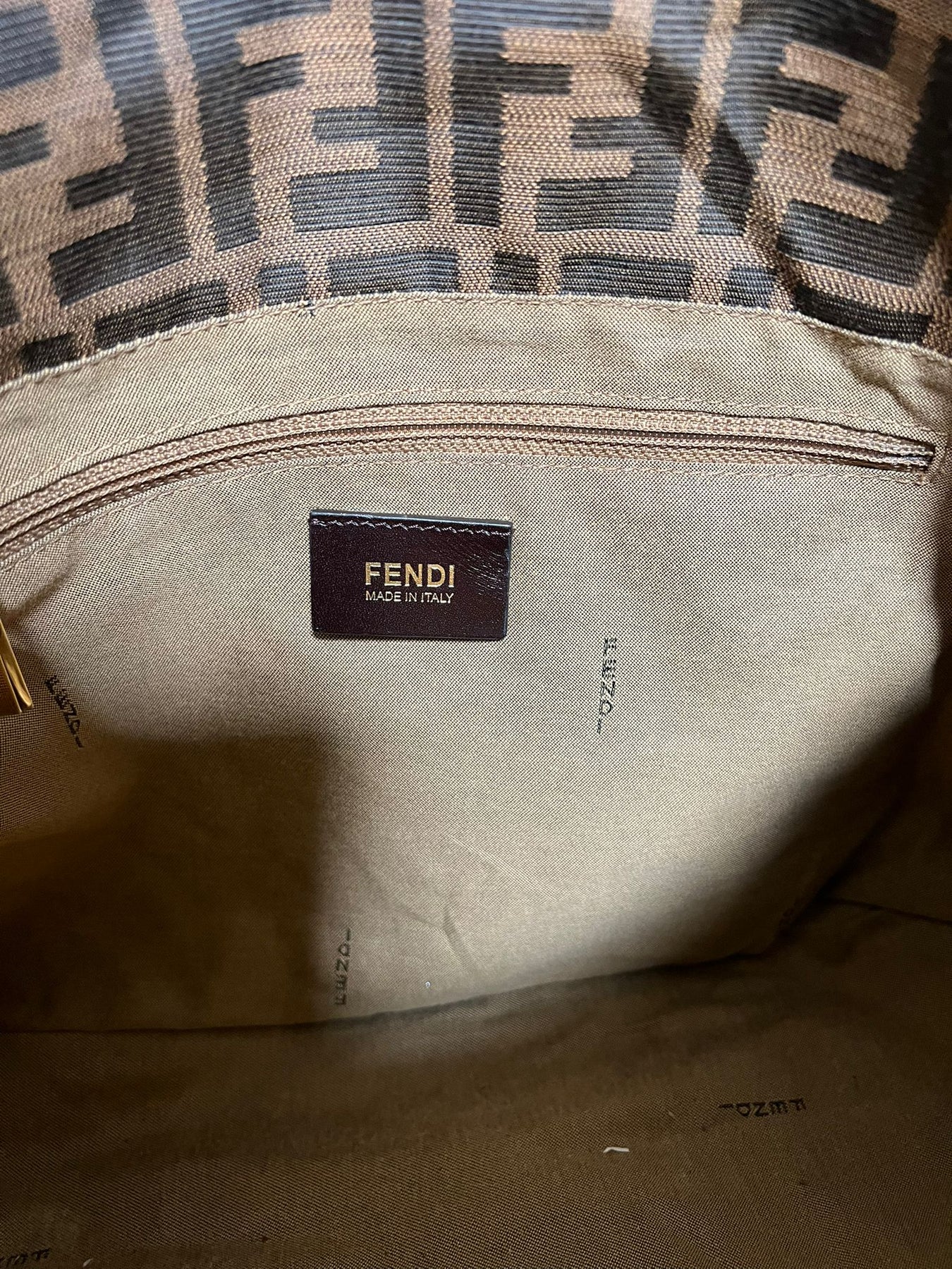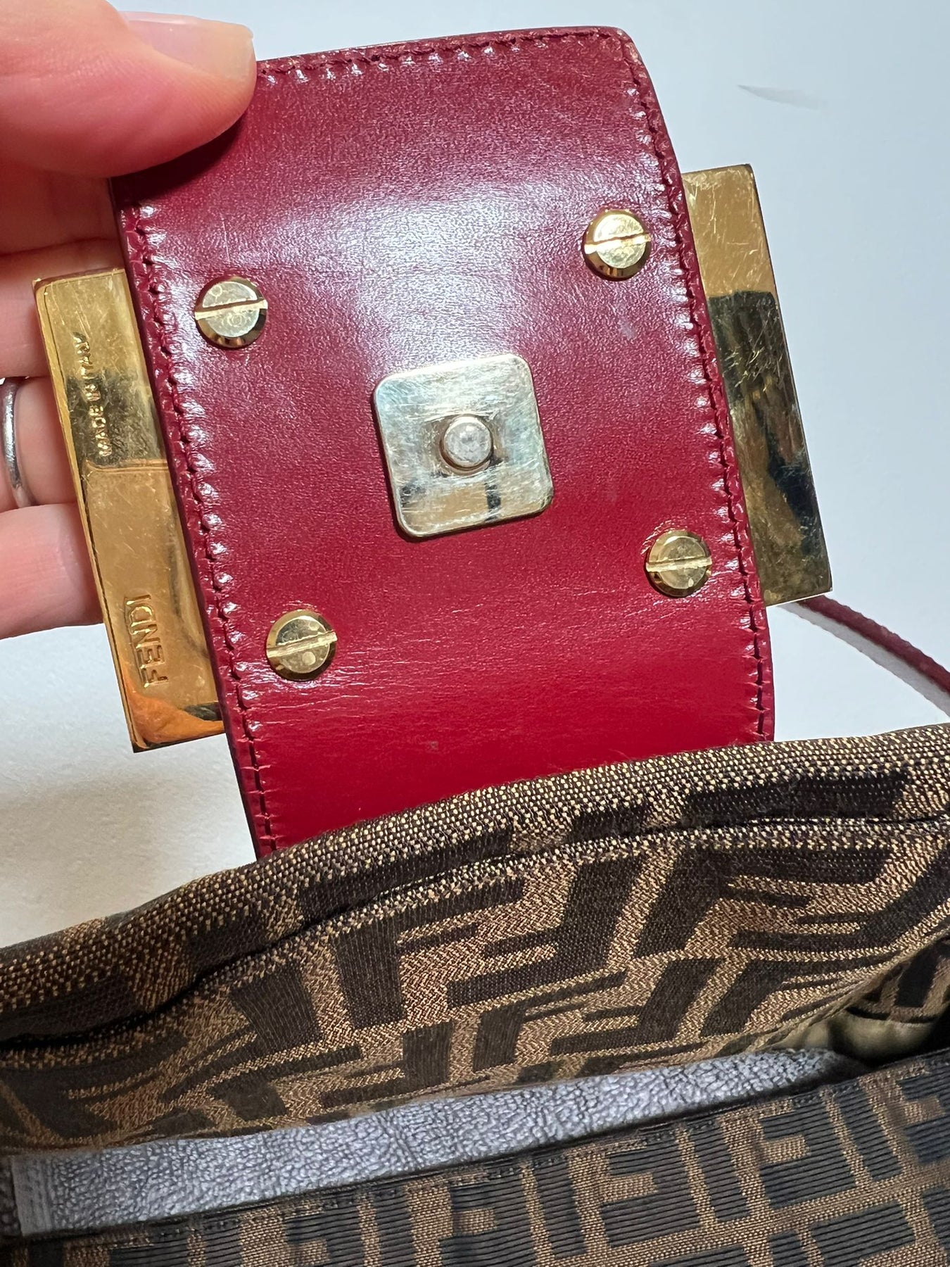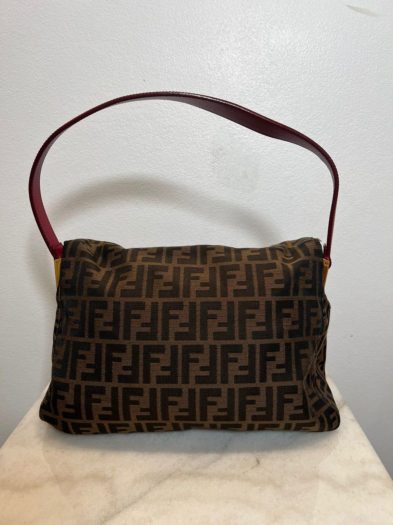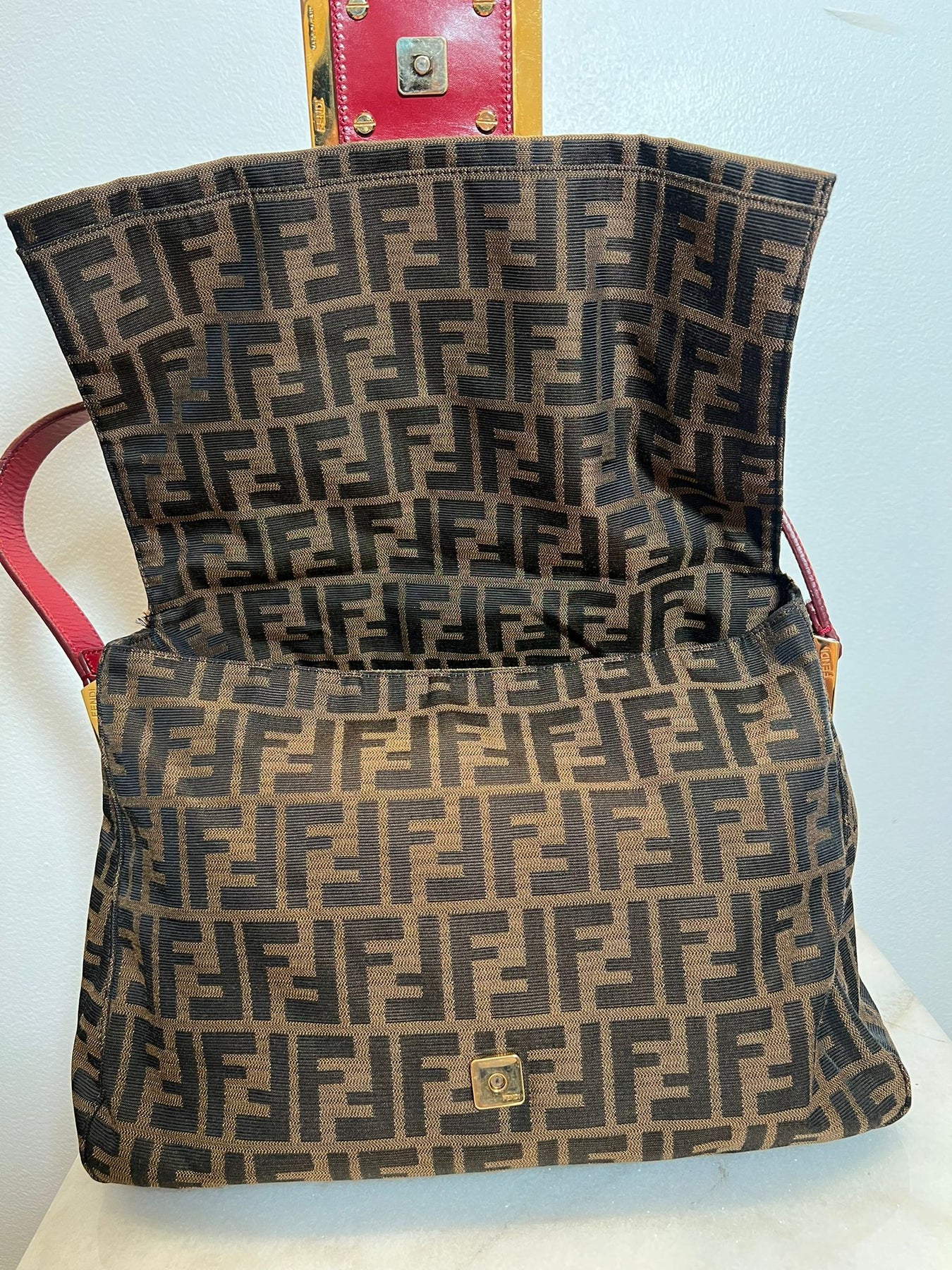 Fendi Zucca Baguette Mamma Shoulder Bag with Red Leather