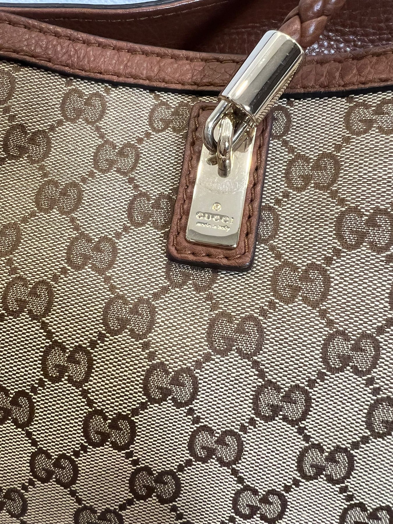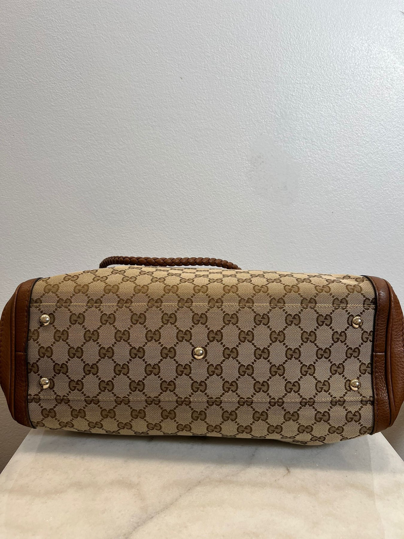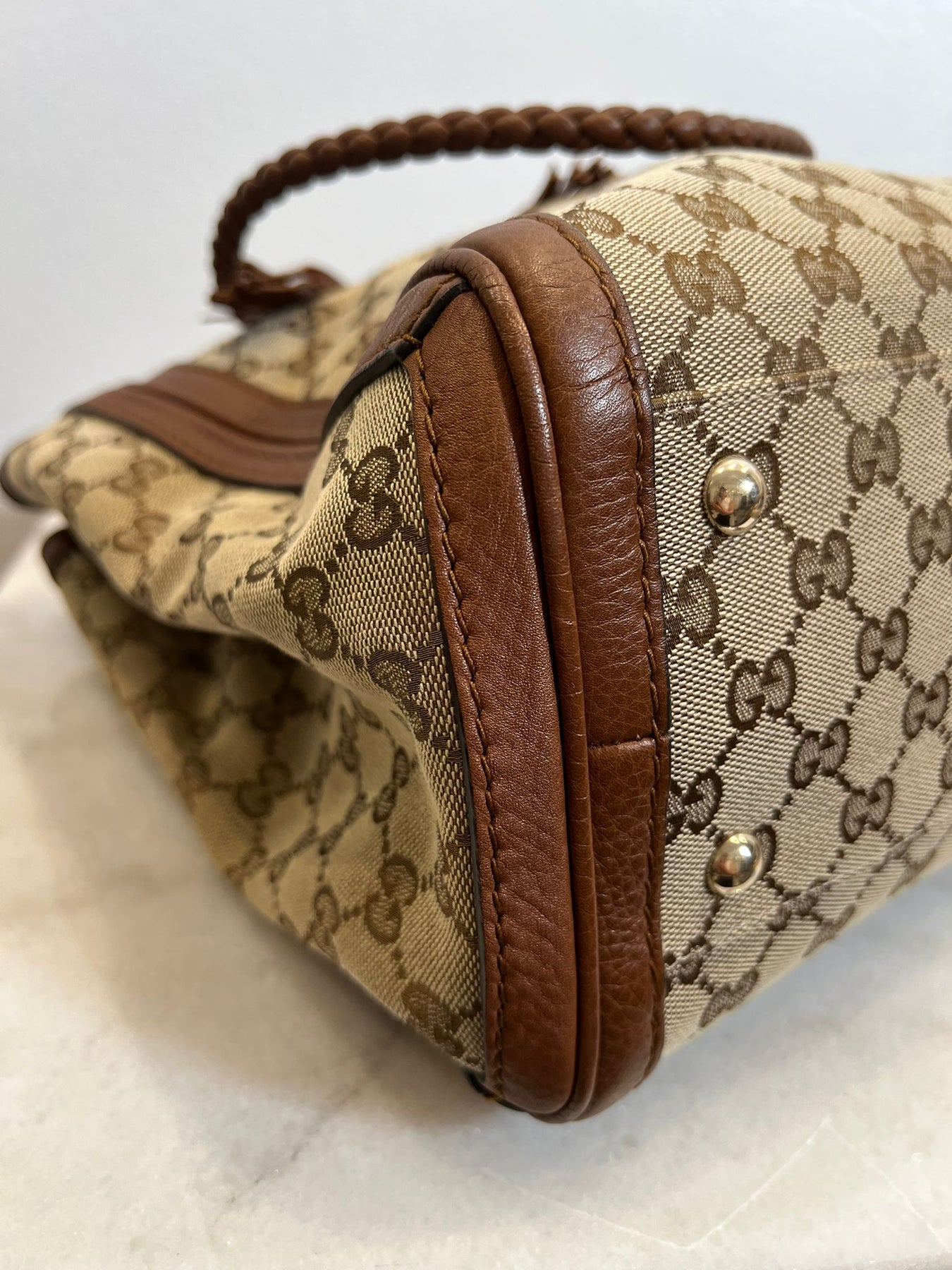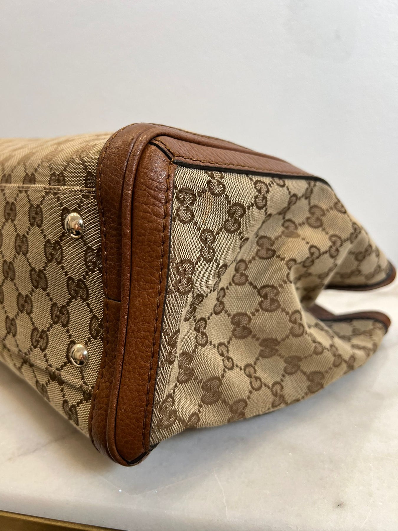 Gucci Brown Canvas GG Shoulder Bag with Brown Leather Trim