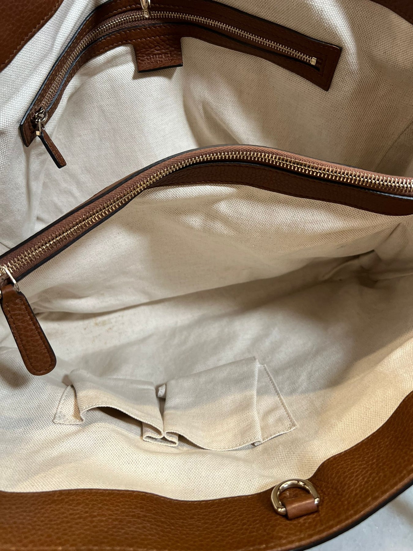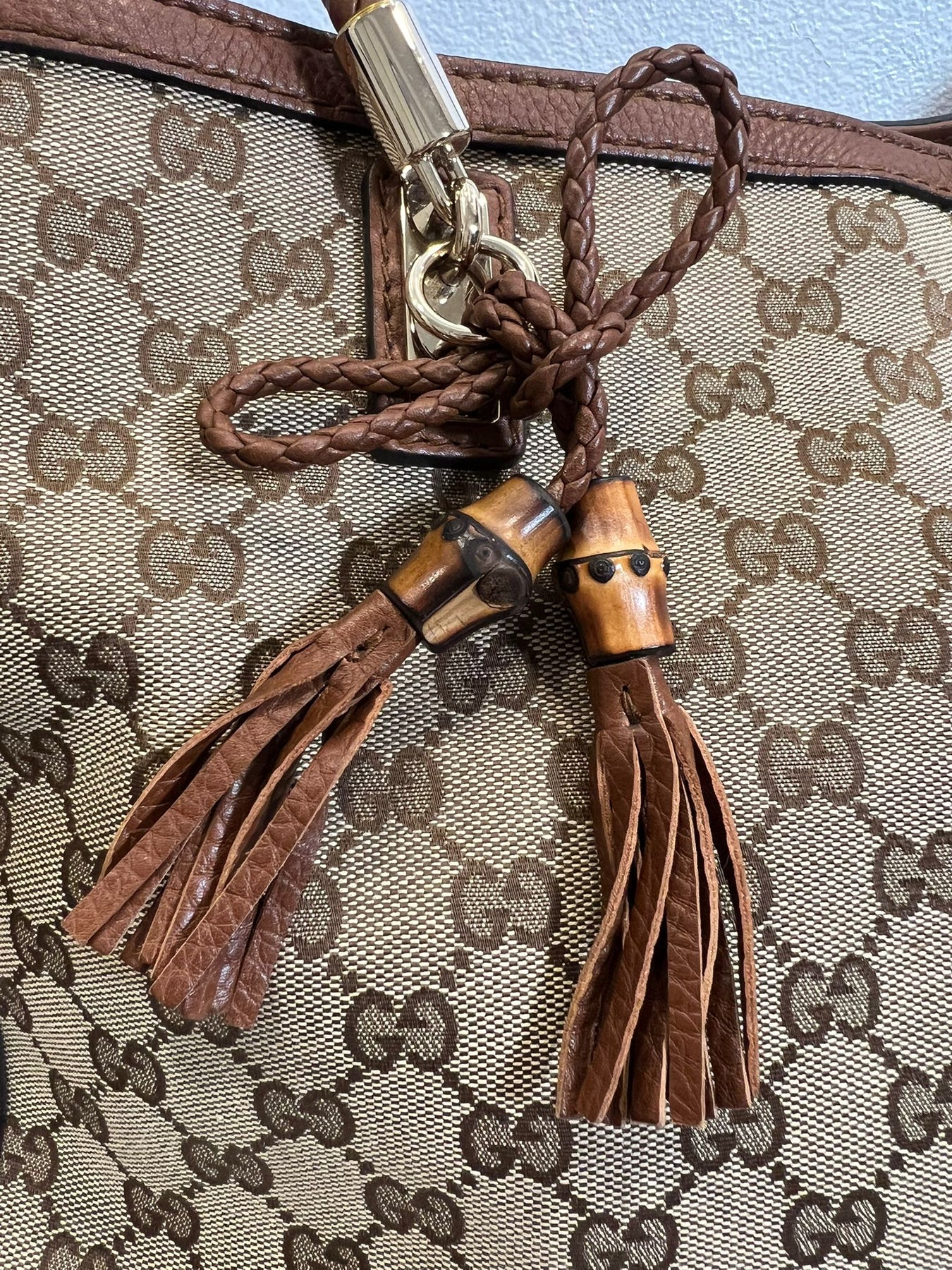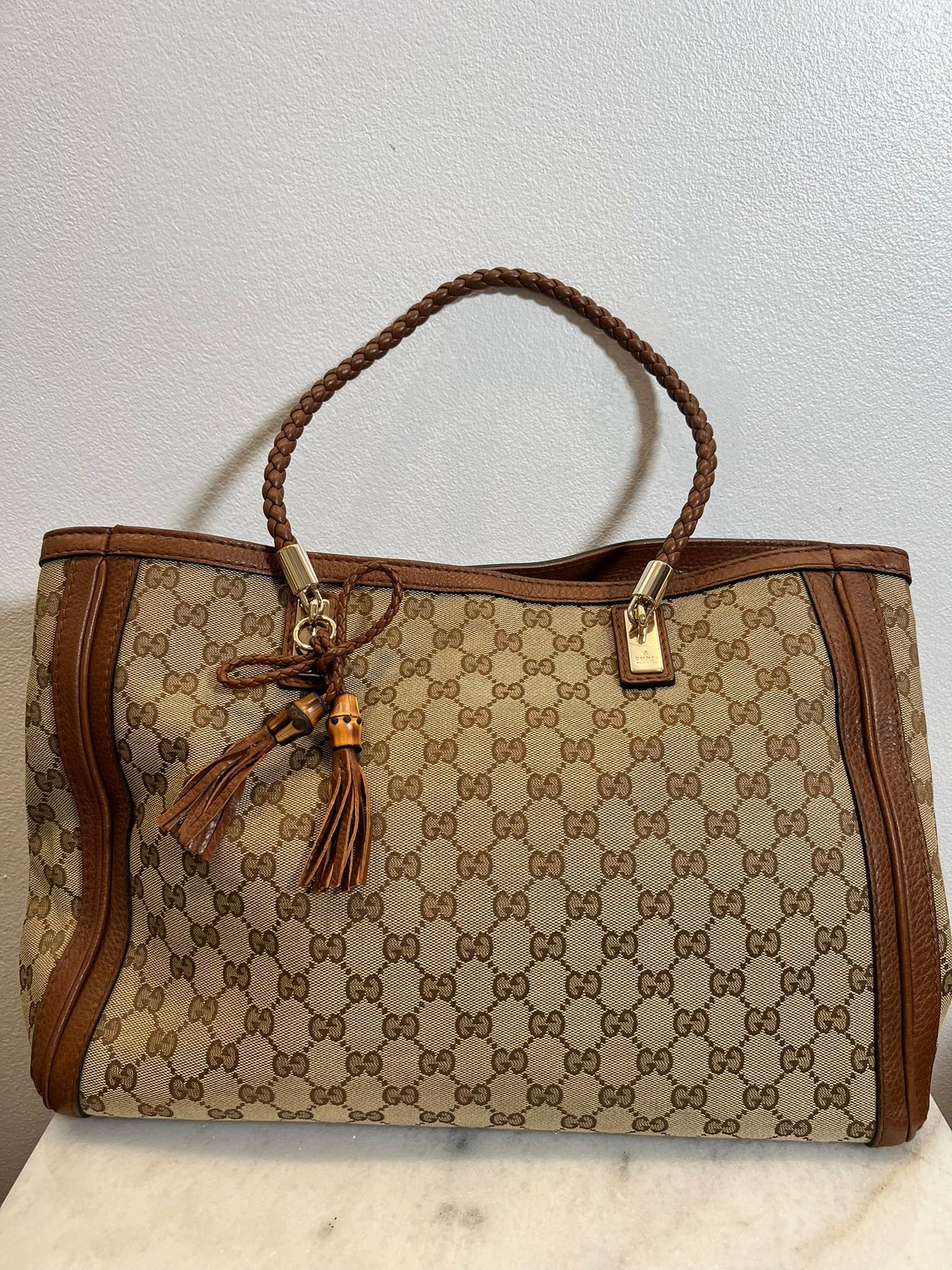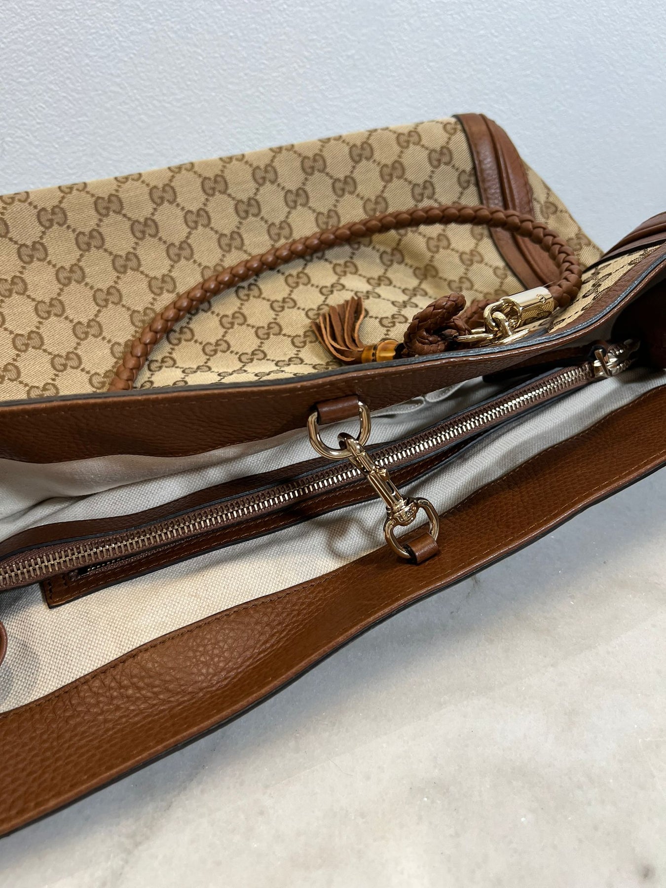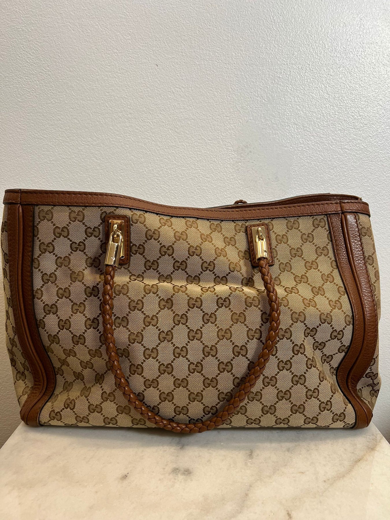 Gucci Brown Canvas GG Shoulder Bag with Brown Leather Trim