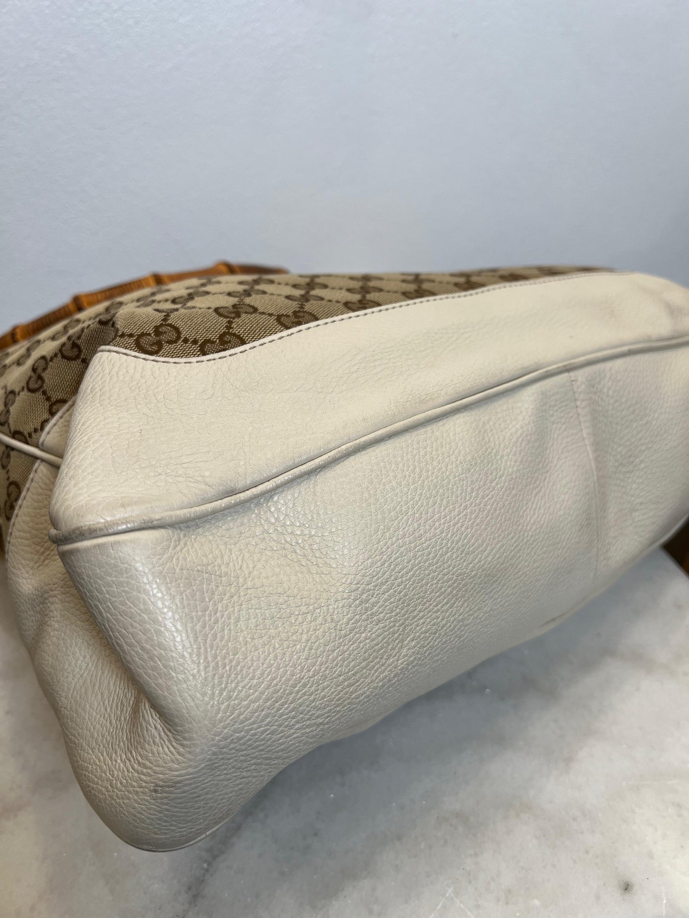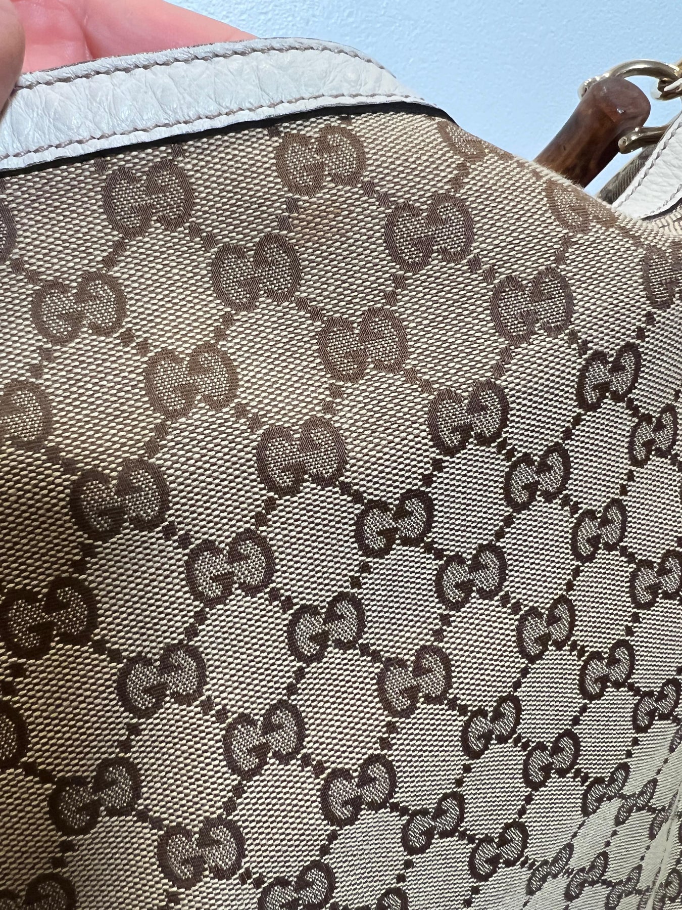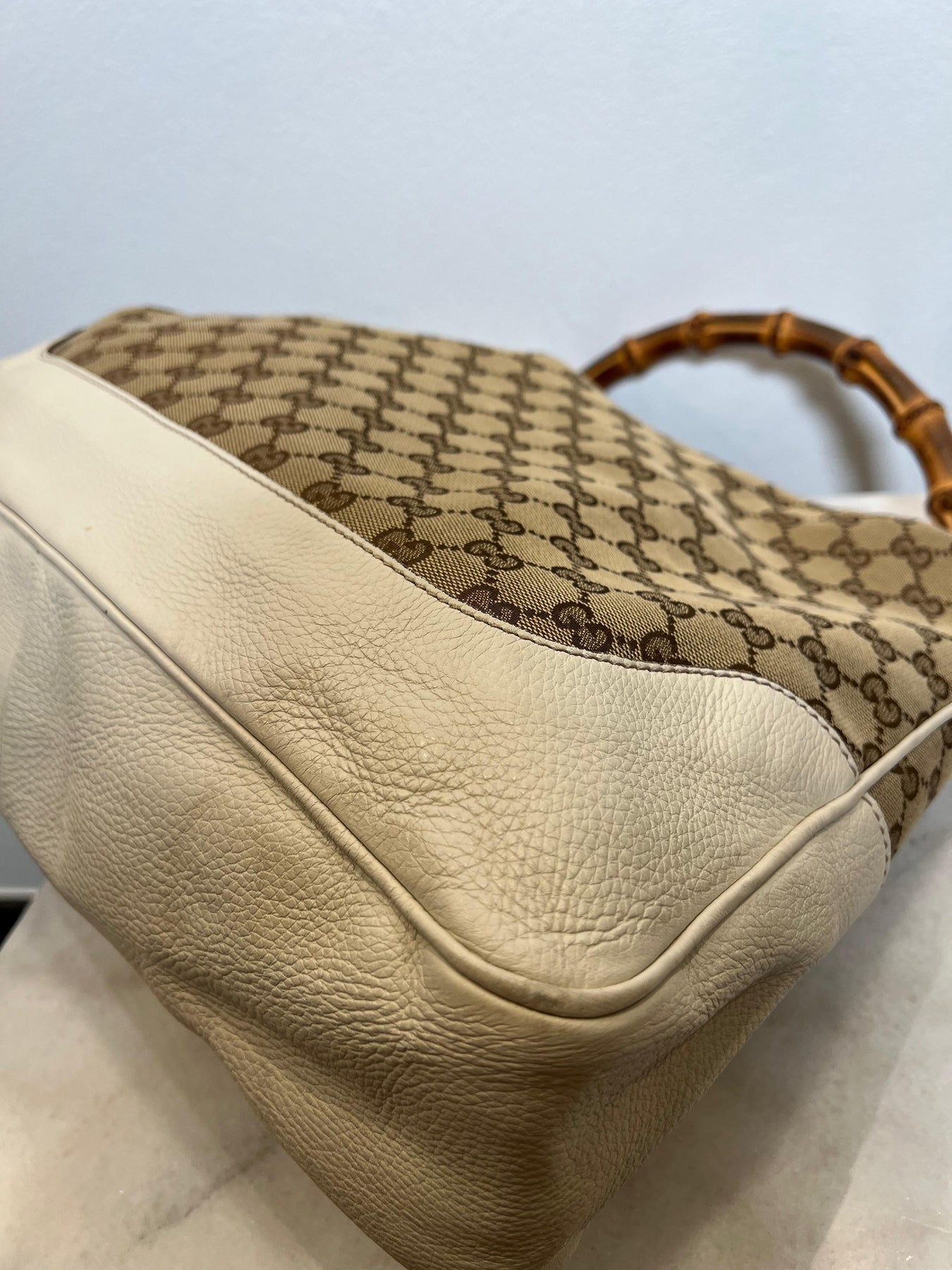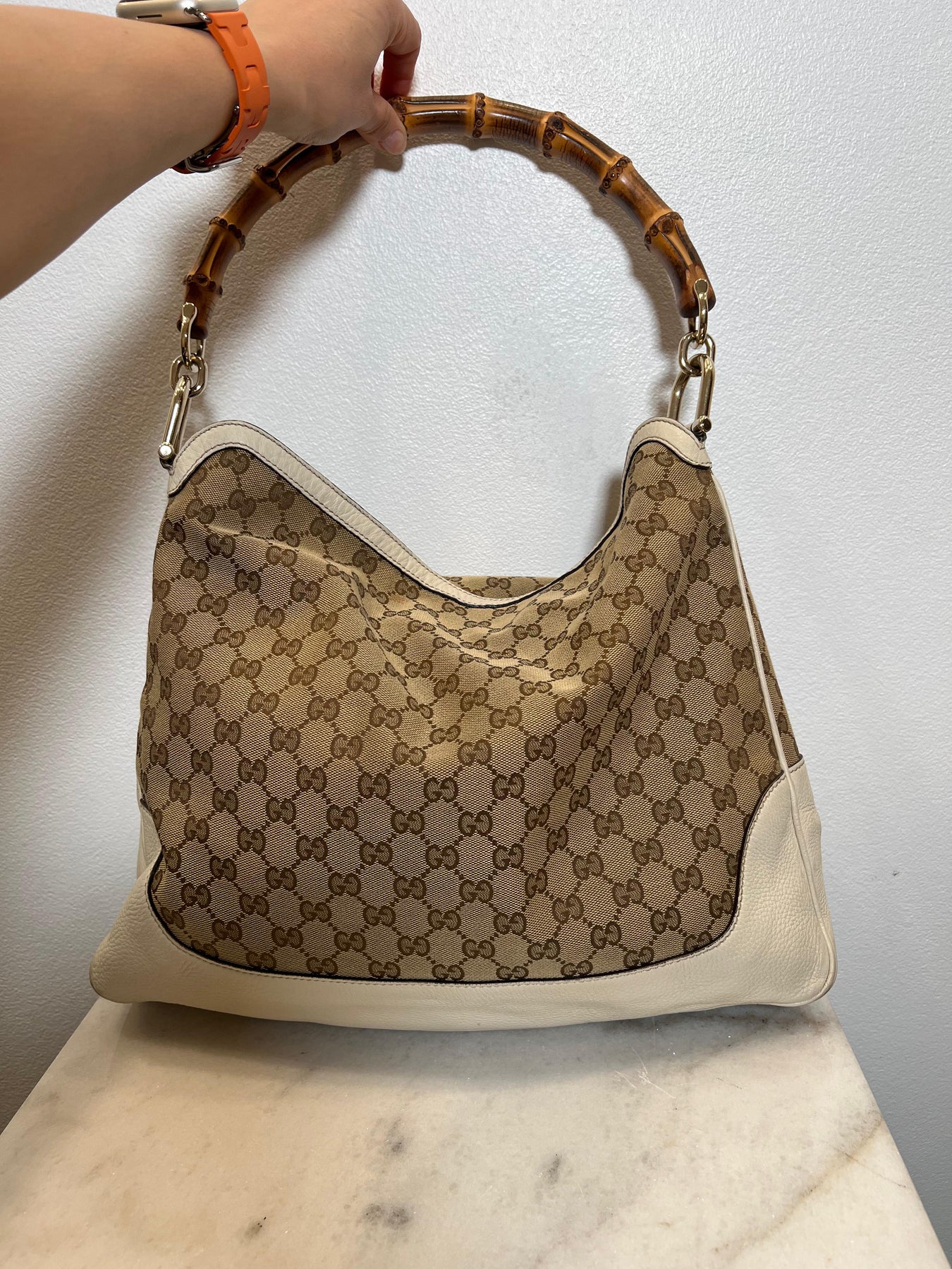 Gucci Large Diana Bag Logo GG Brown Canvas with White Leather Trim and Bamboo Handle
