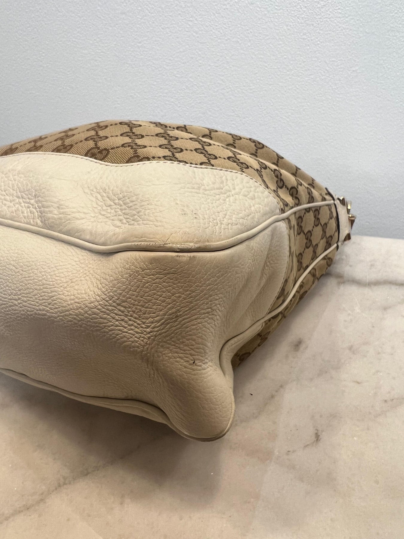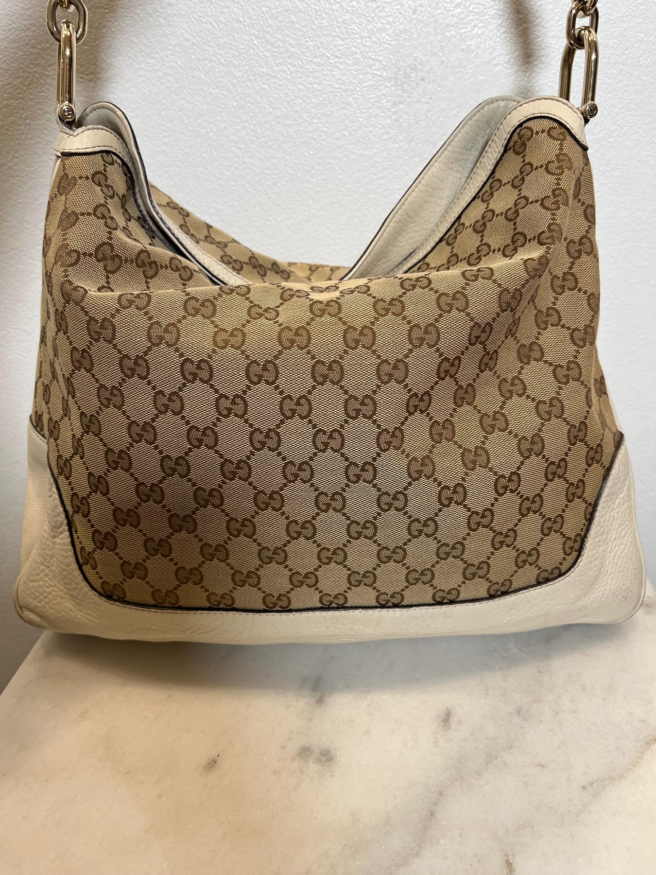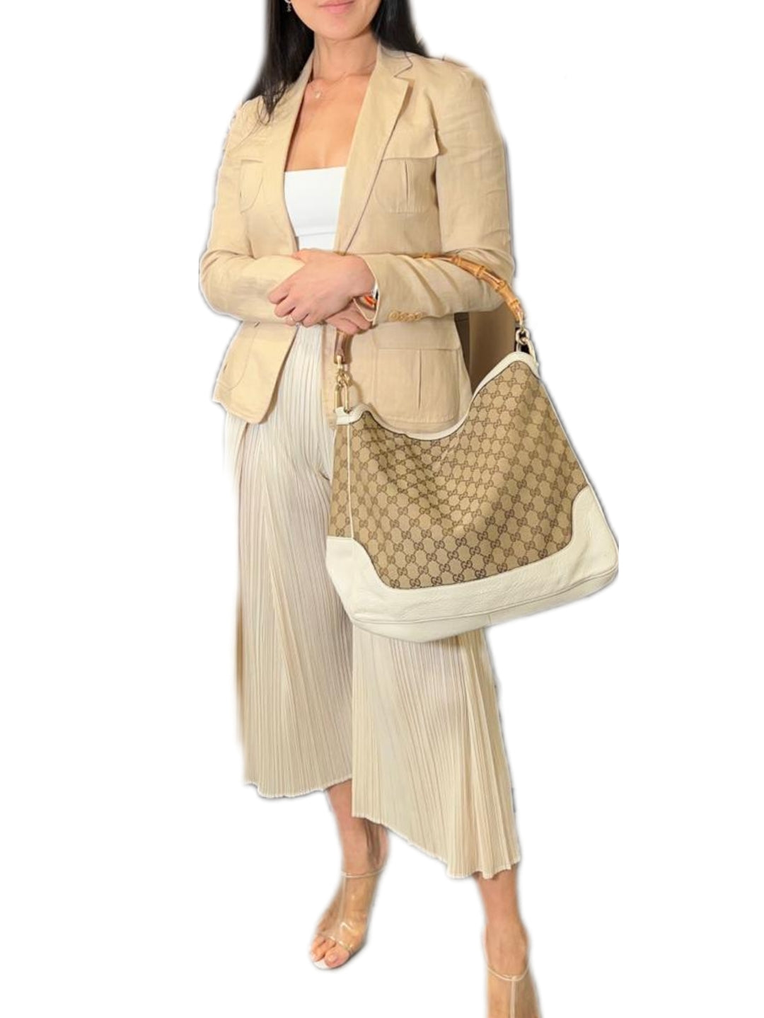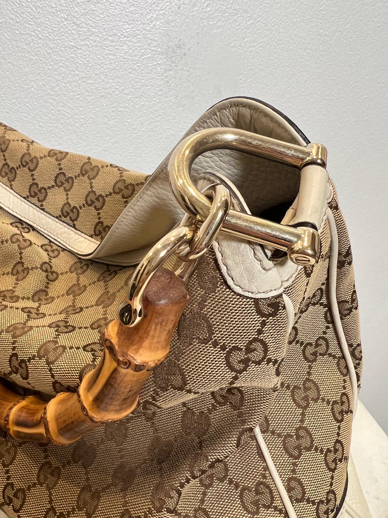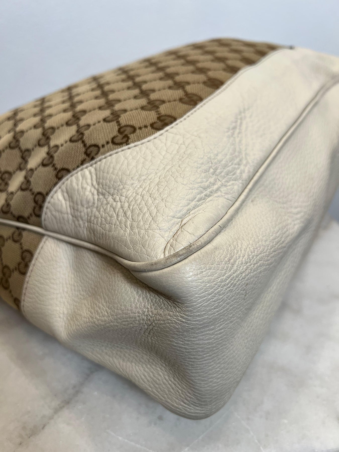 Gucci Large Diana Bag Logo GG Brown Canvas with White Leather Trim and Bamboo Handle