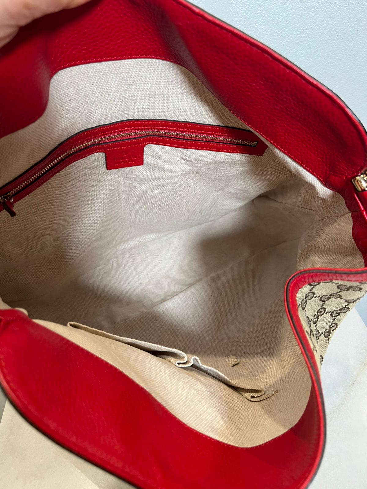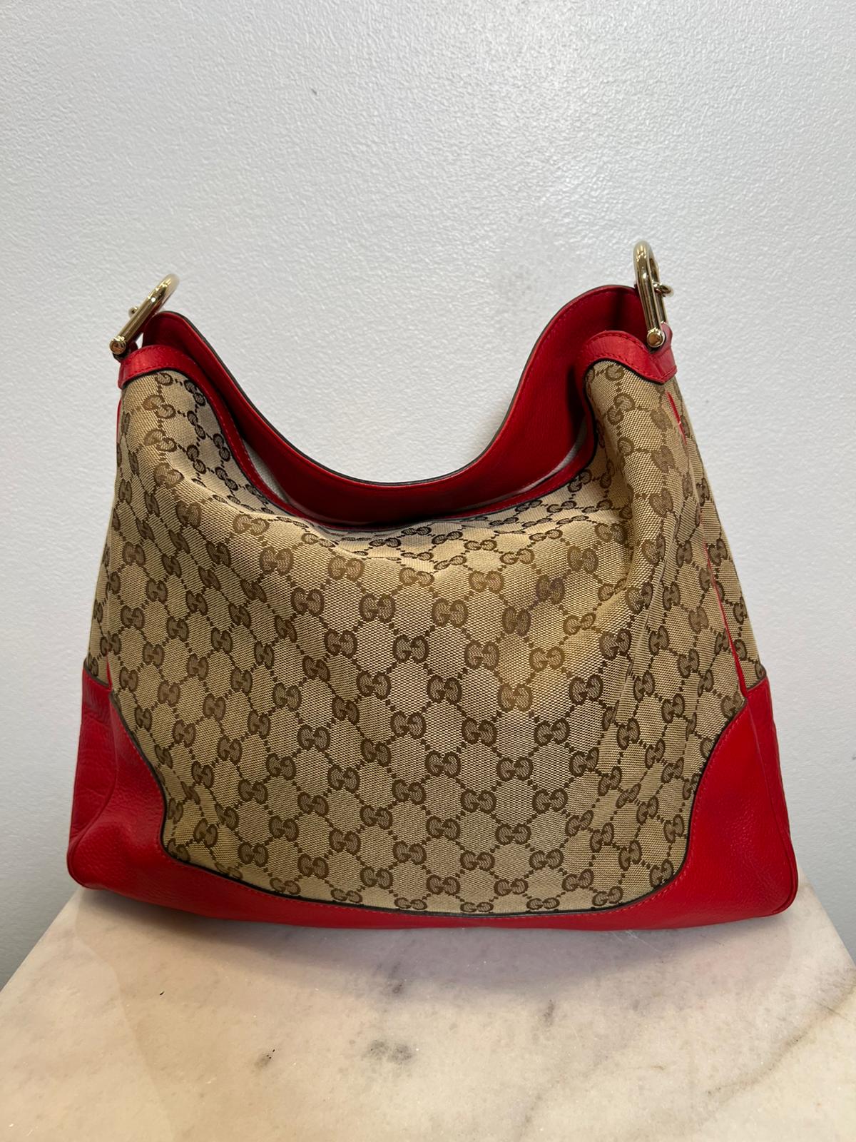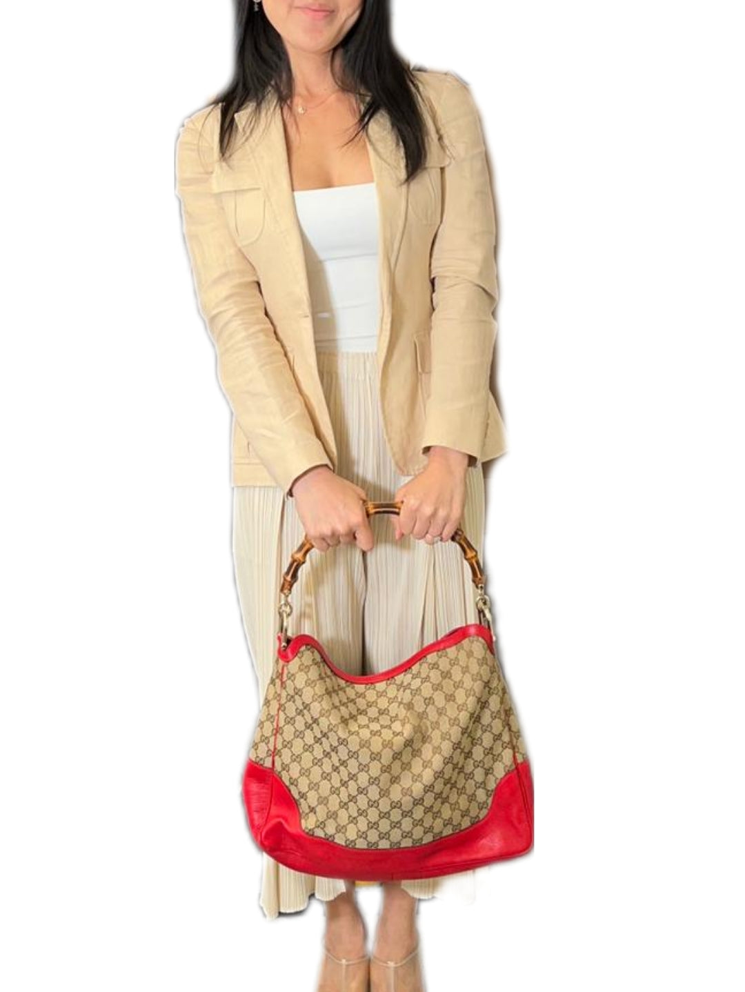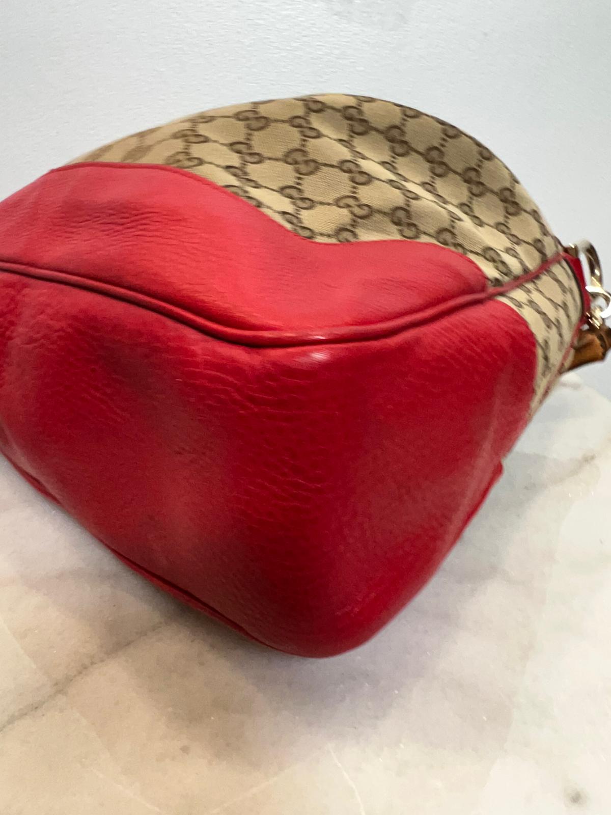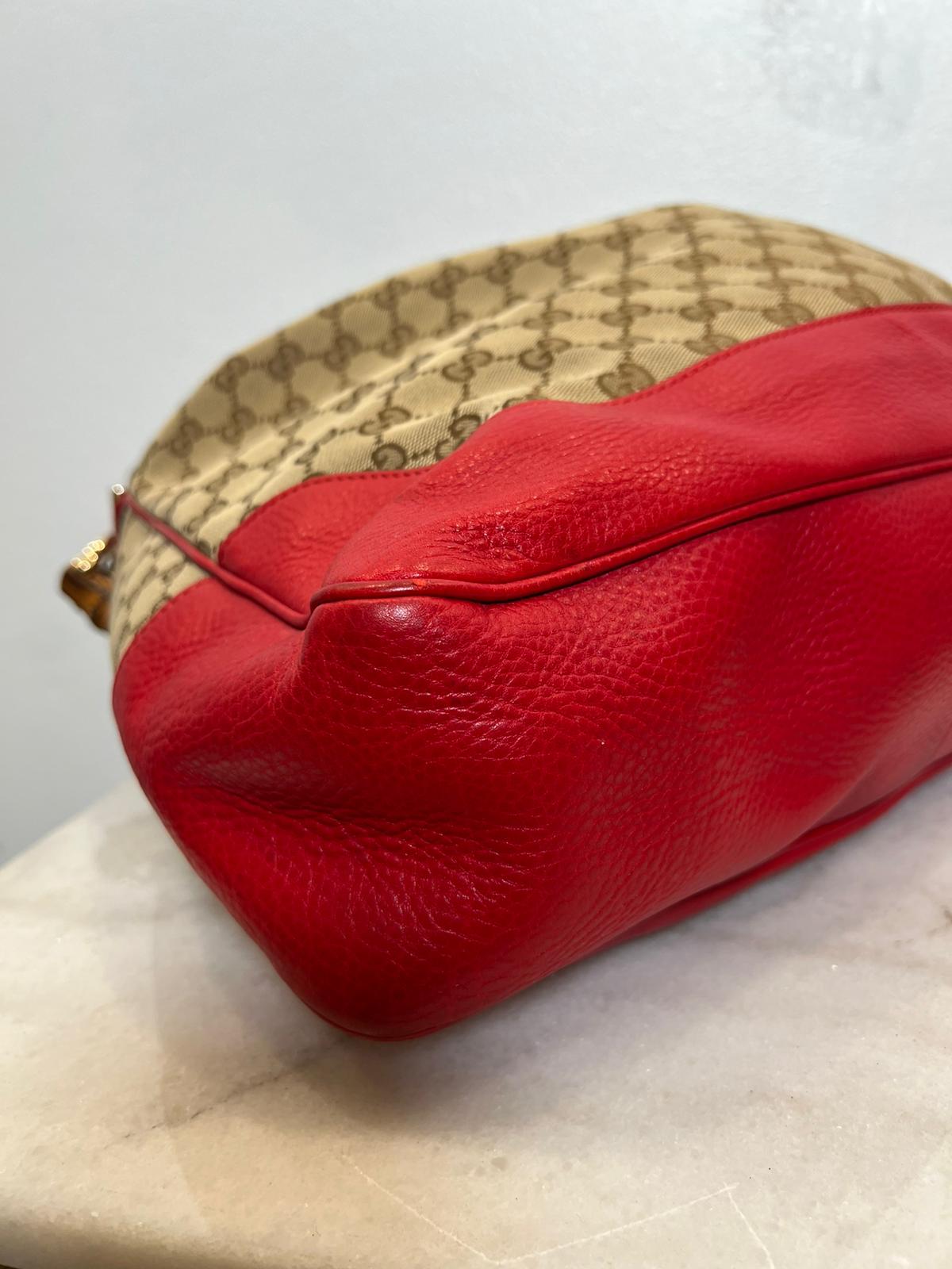 Gucci Logo GG Brown with Red Leather Trim and Bamboo Handle Large Diana Shoulder Bag