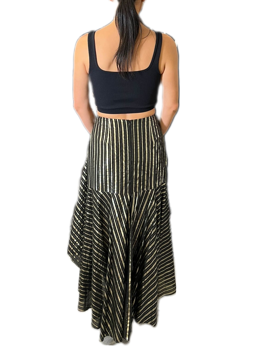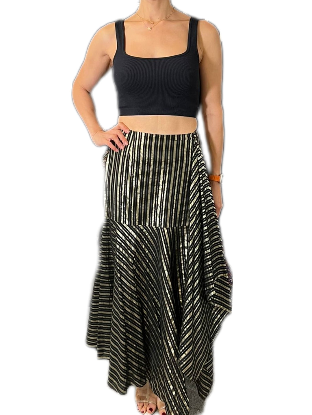 Description : black/ gold, 85% viscose rayon 15% metallised fiber, lining 97% polyester 3% elastane, very good condition