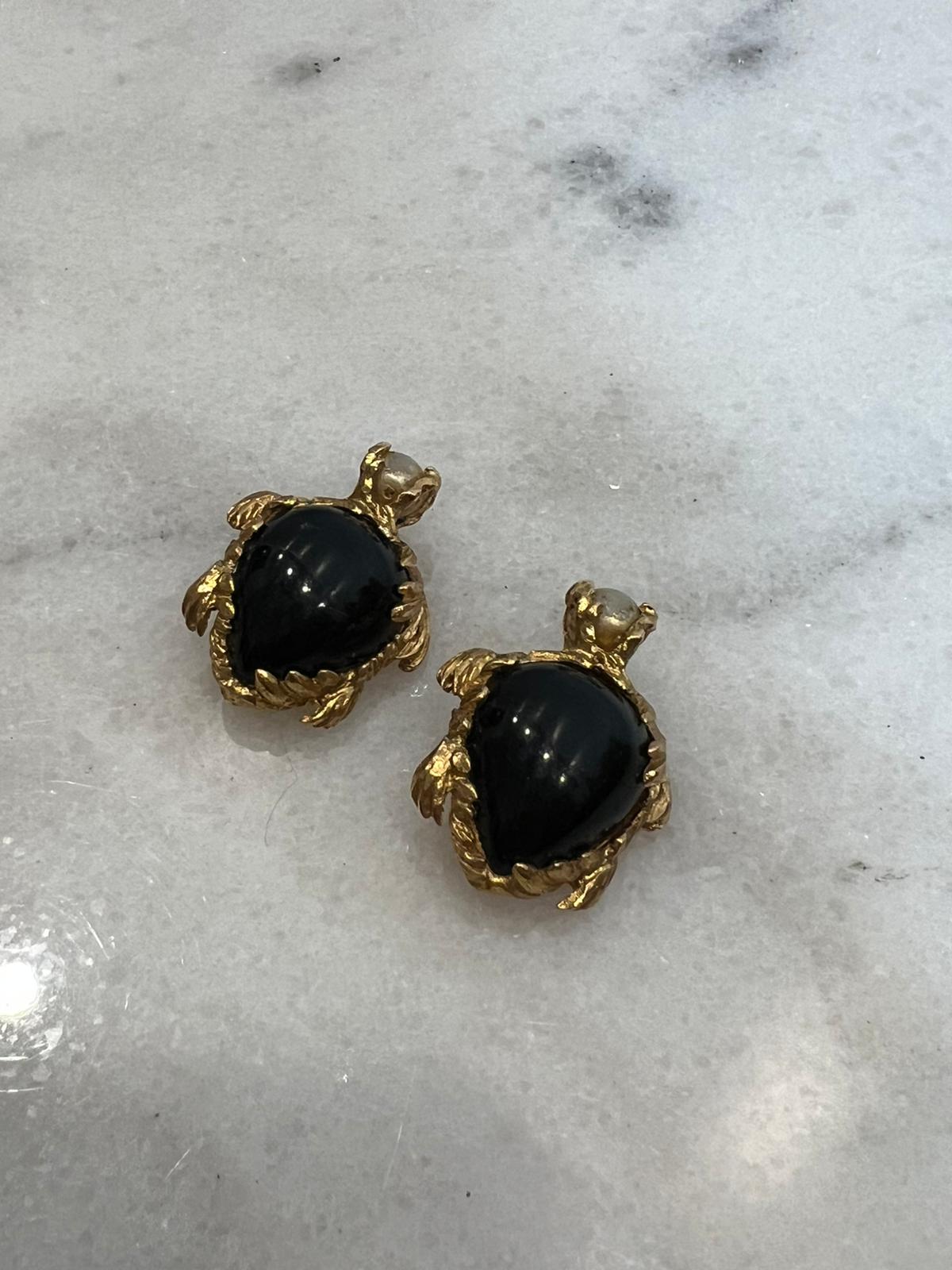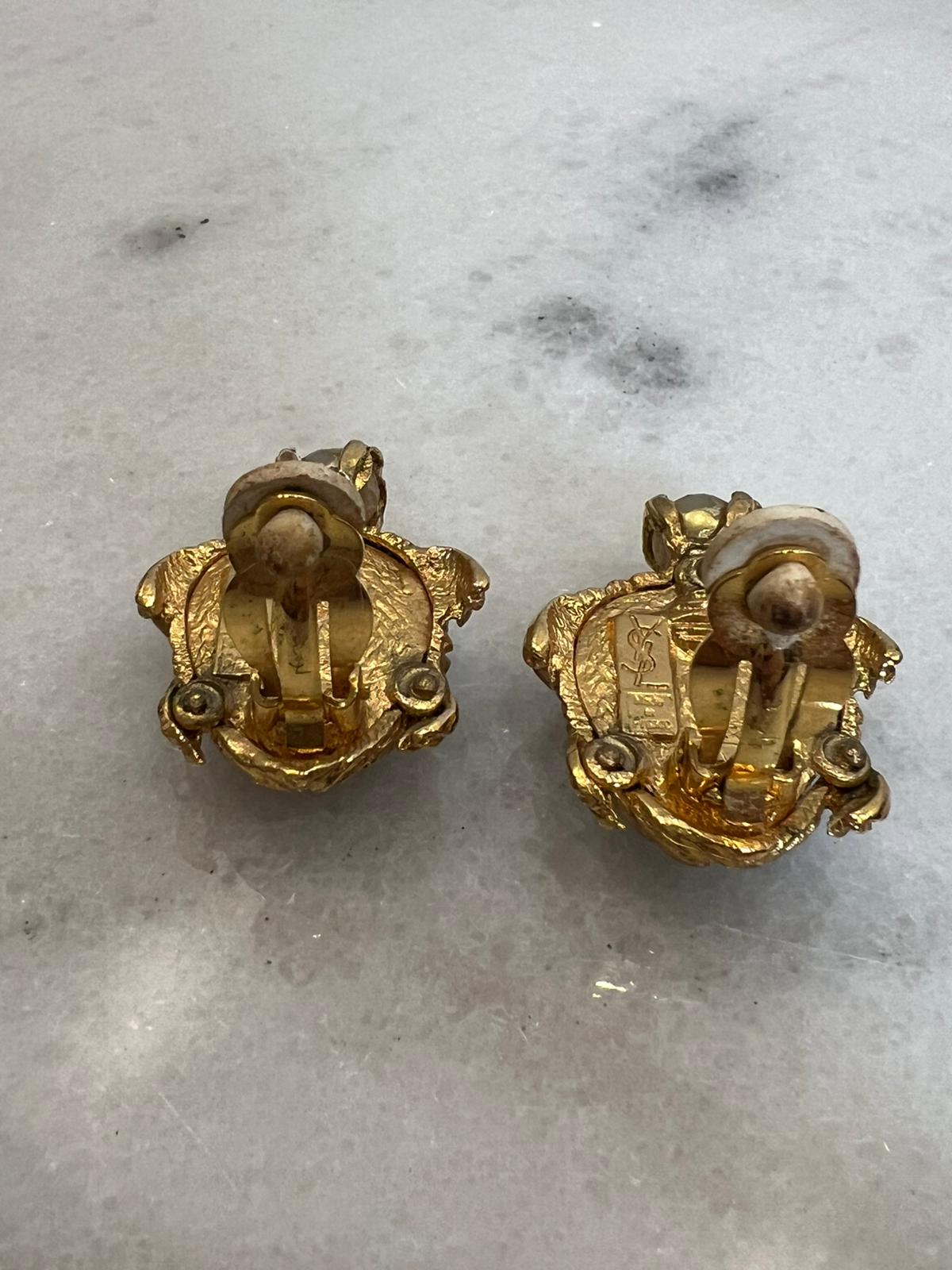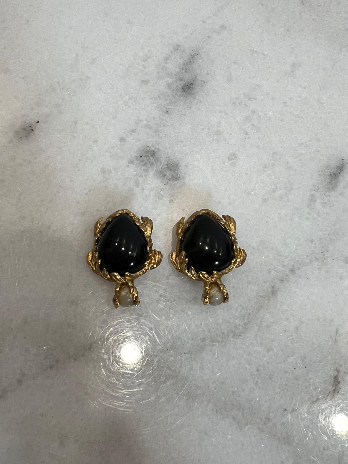 Saint Laurent Vintage Black & White Stone with Gold Detail Clip On Earrings