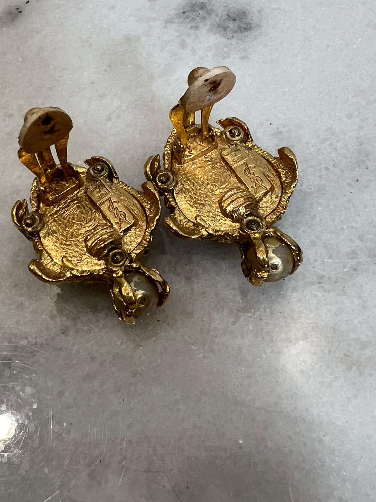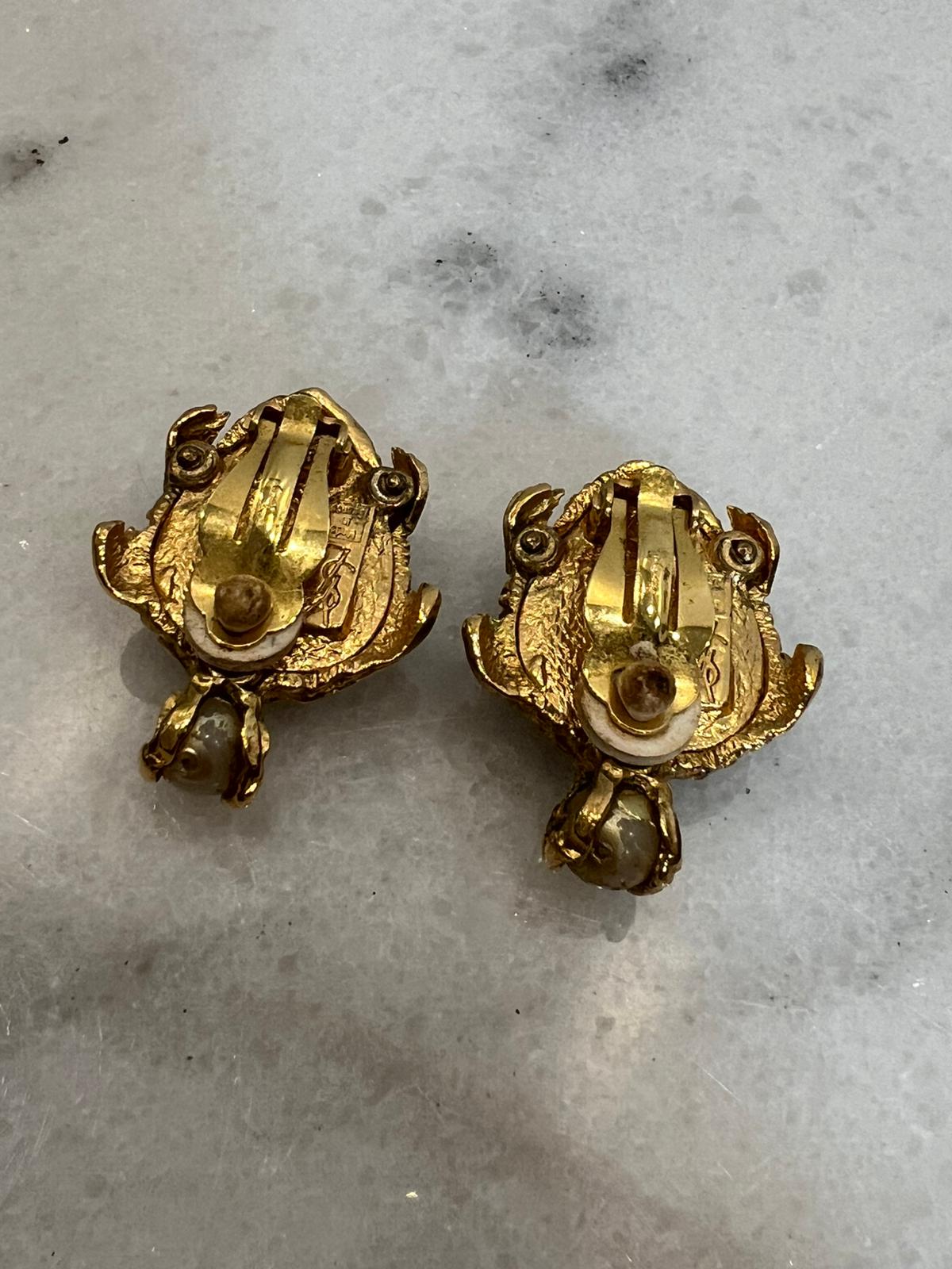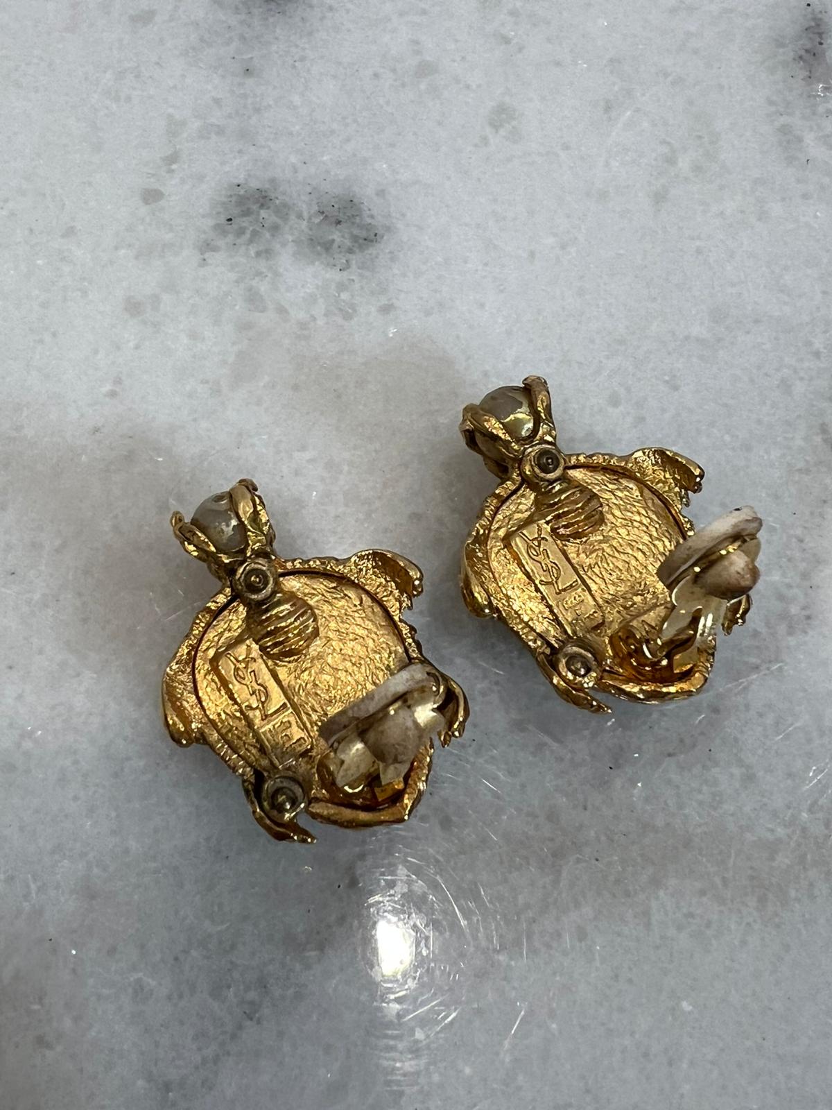 Saint Laurent Vintage Black & White Stone with Gold Detail Clip On Earrings
