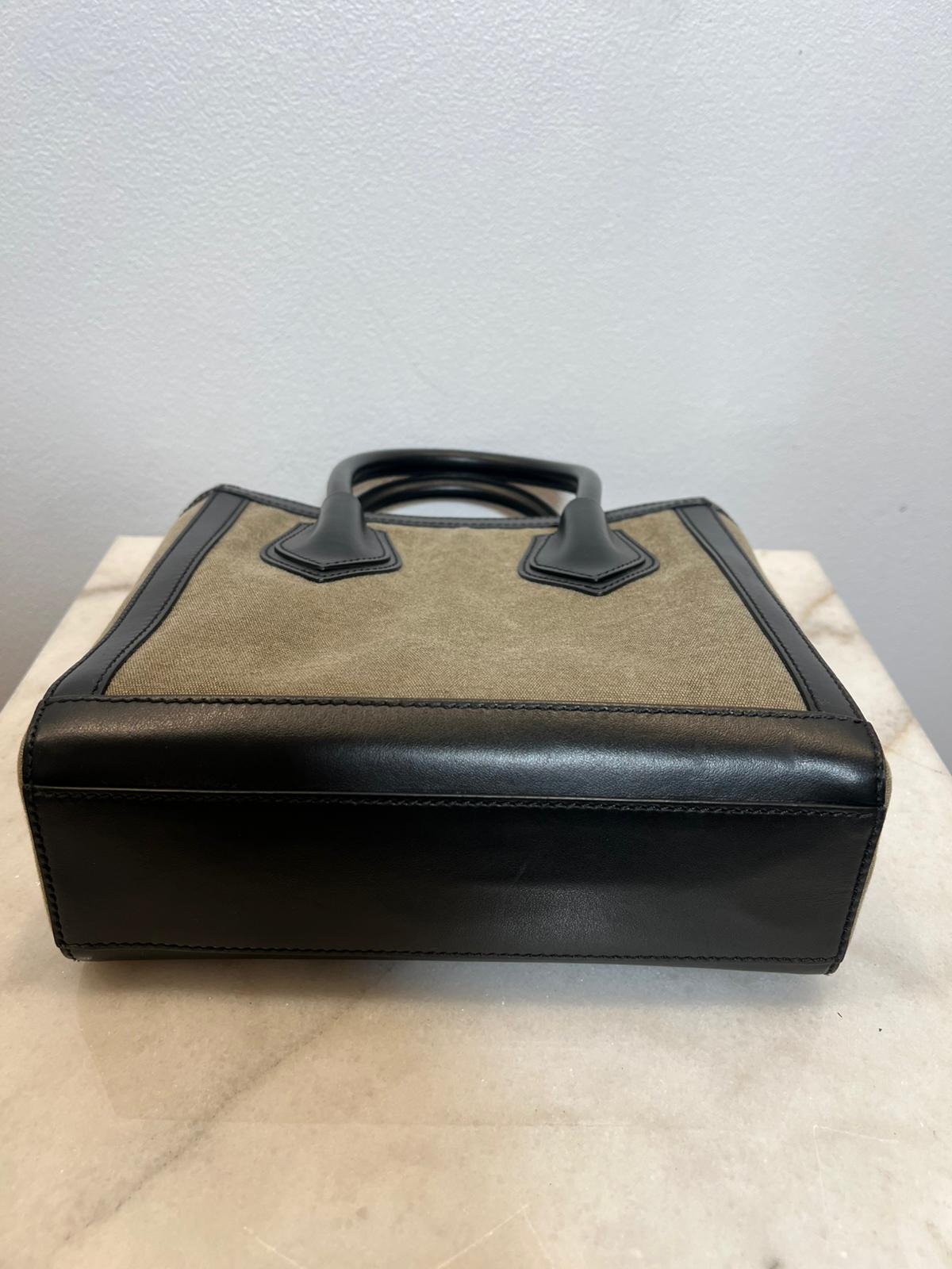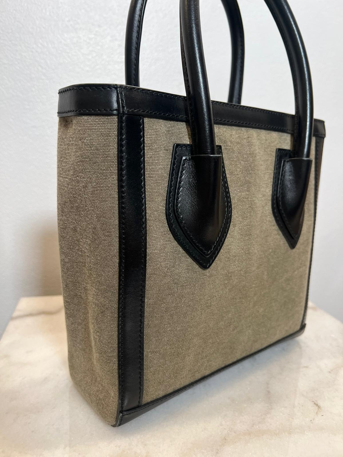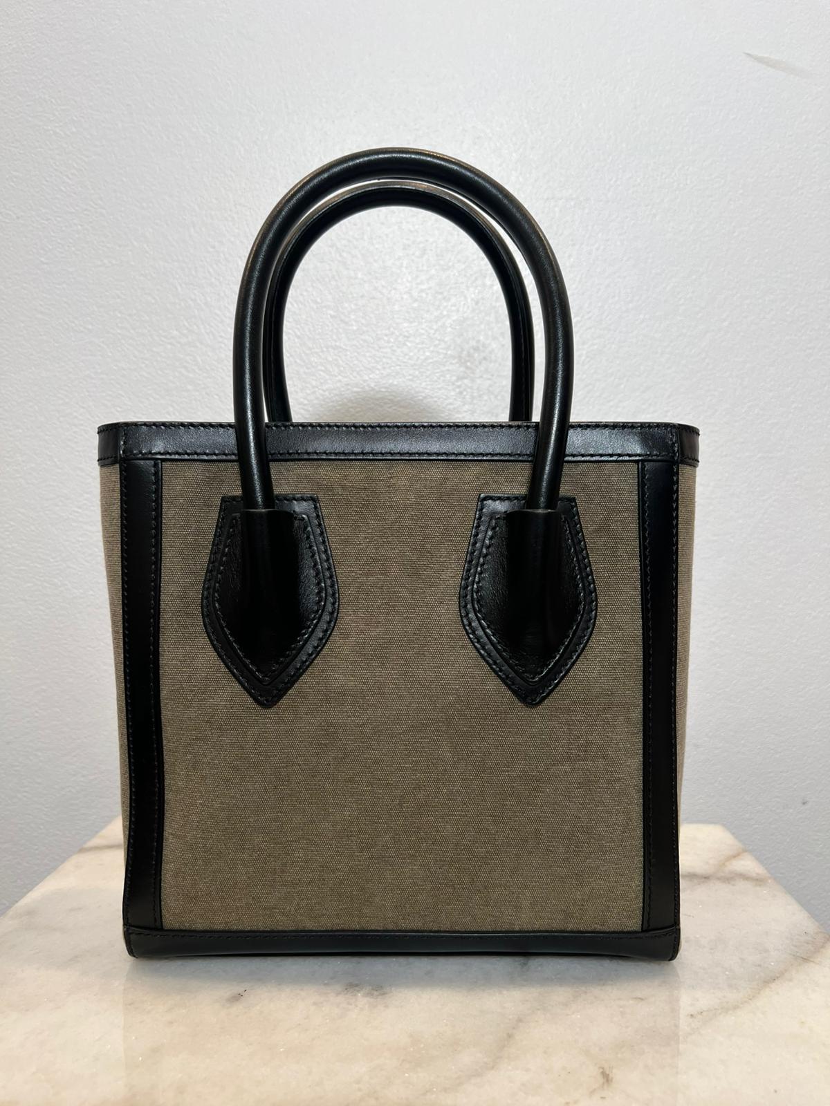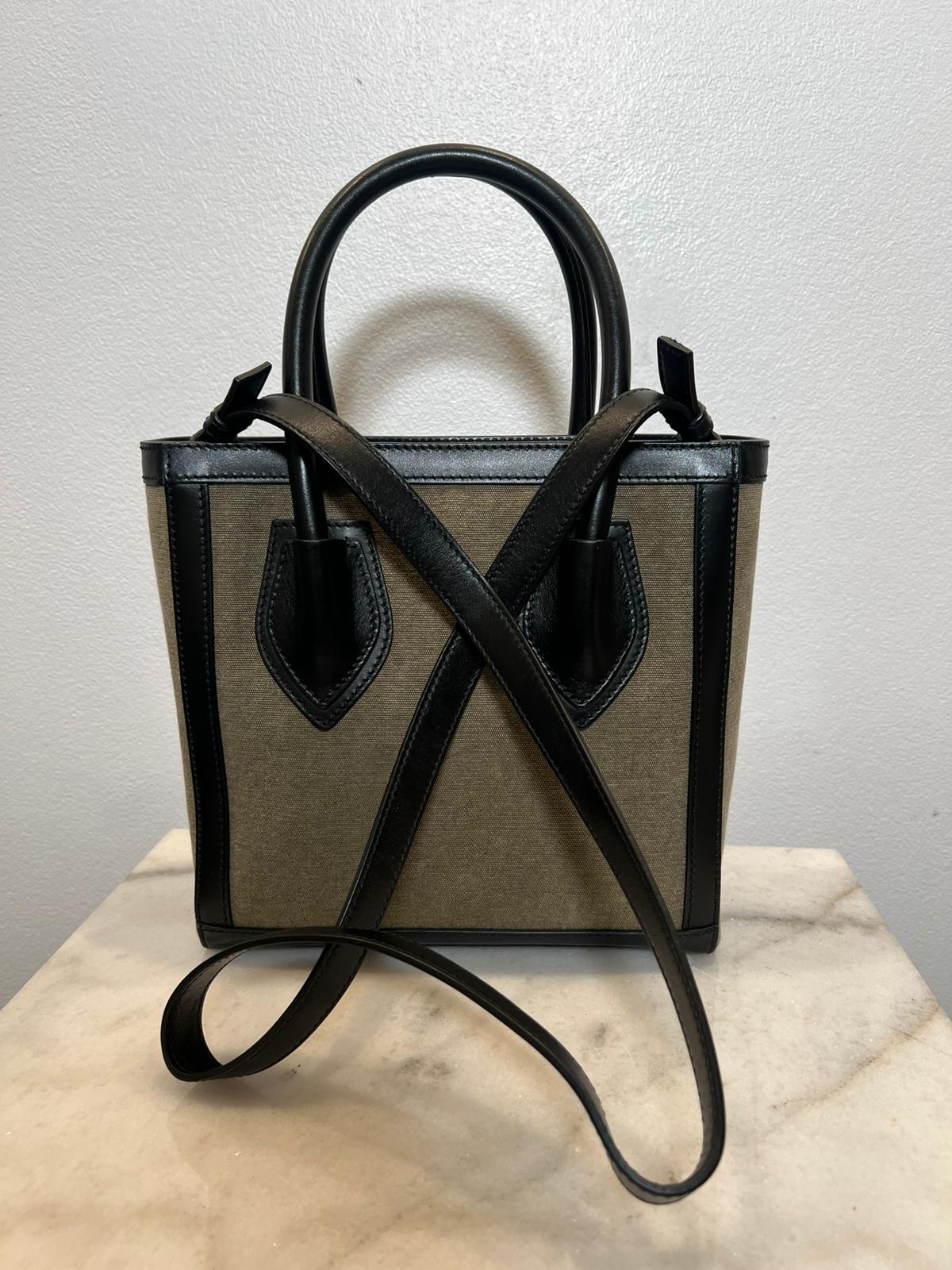 Description : Khaki/ black, 24x23x8.5cm, condition 9/10- mild wear to leather at fron base edges, comes with shoulder strap,