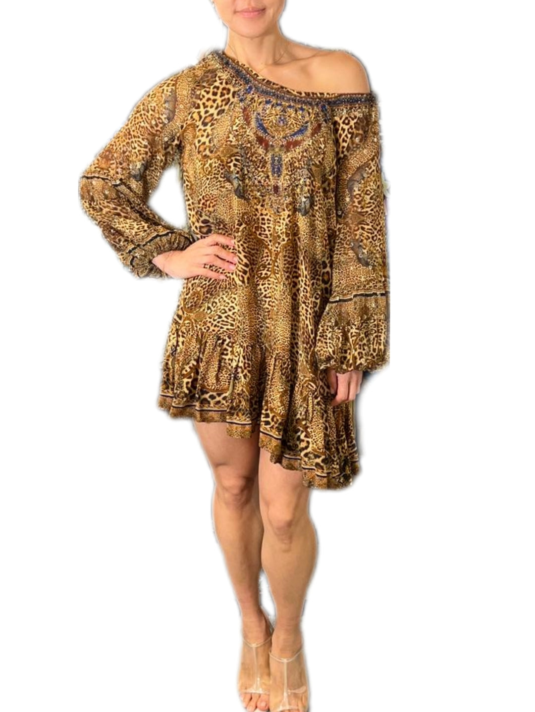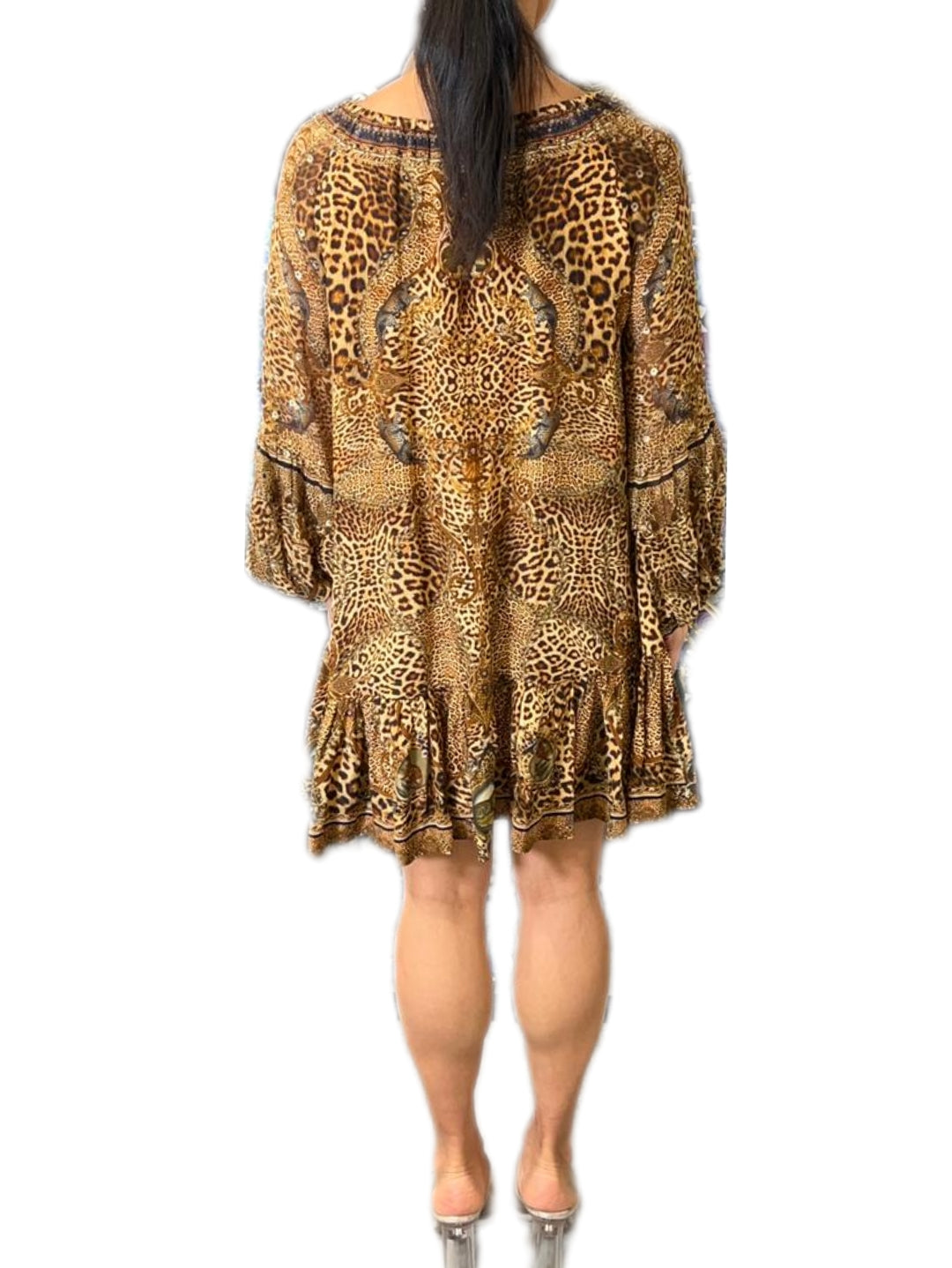 Camilla Leopard Print Long Sleeve Mini Dress - size S