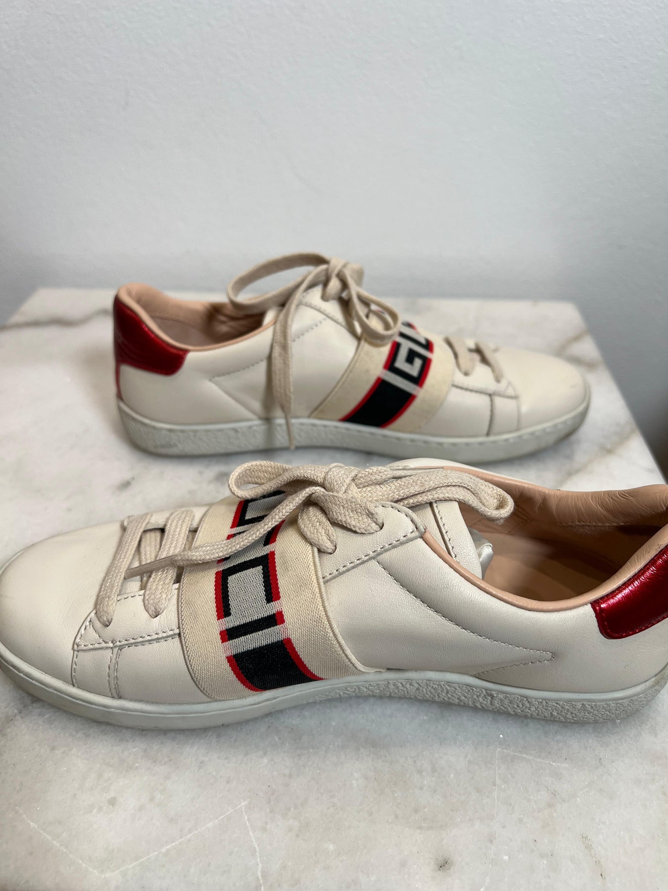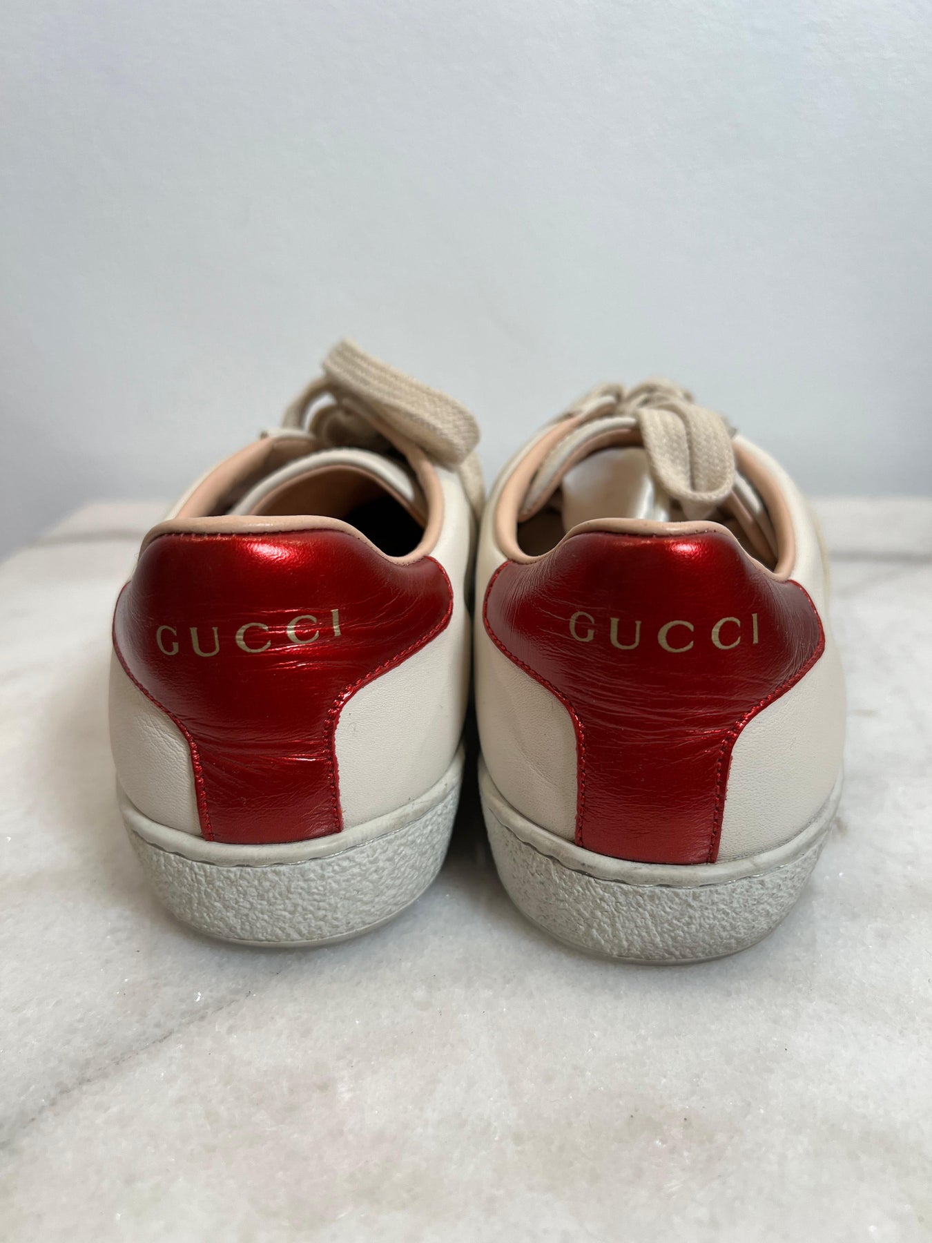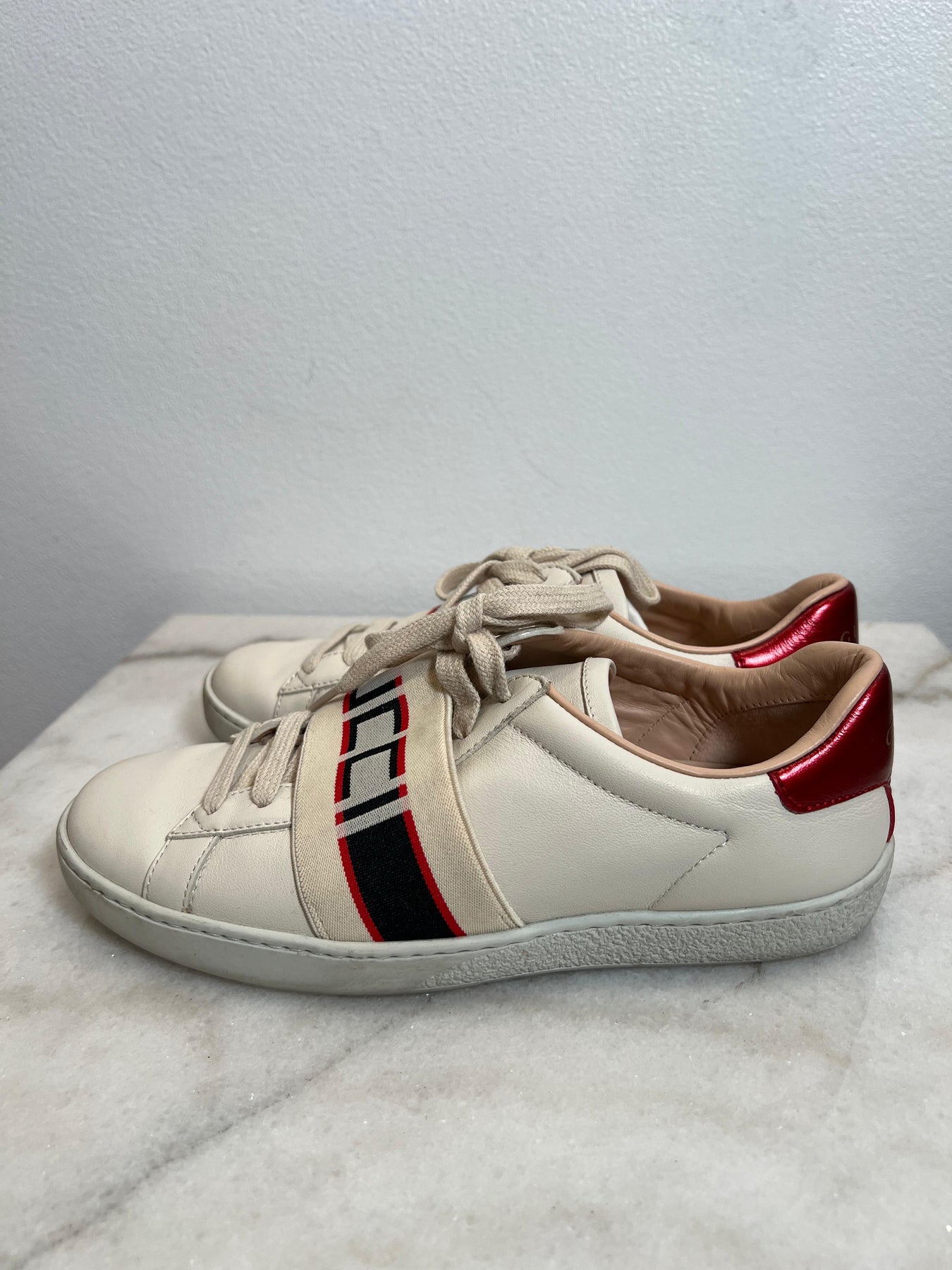 Description : White with red/ navy, with dust bag, length 24.2cm,