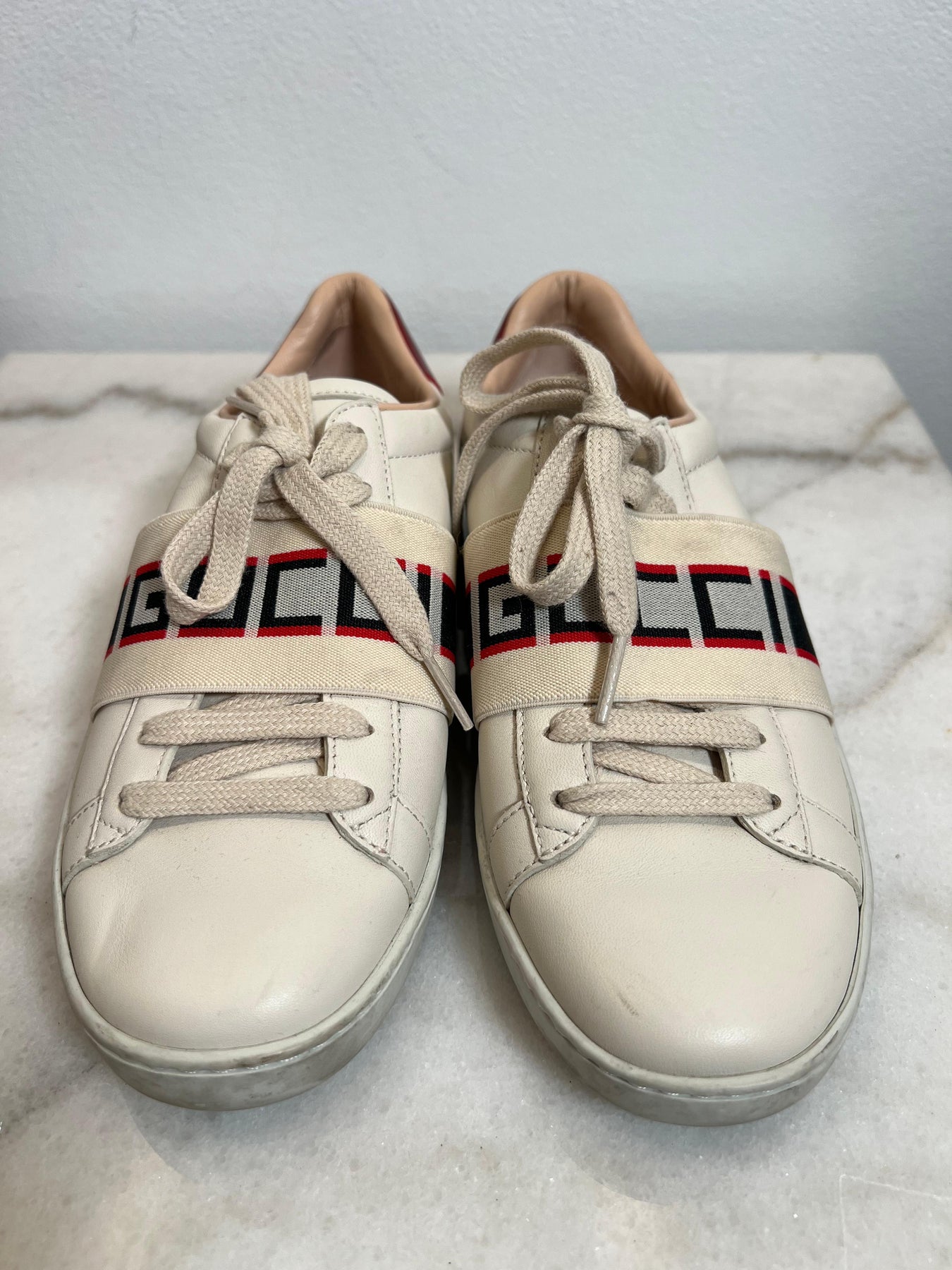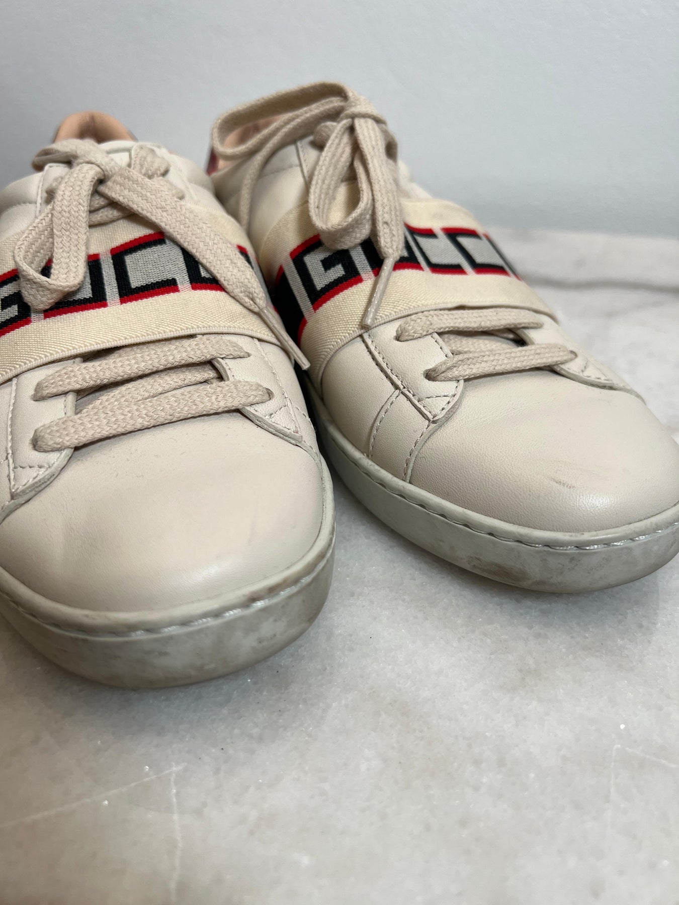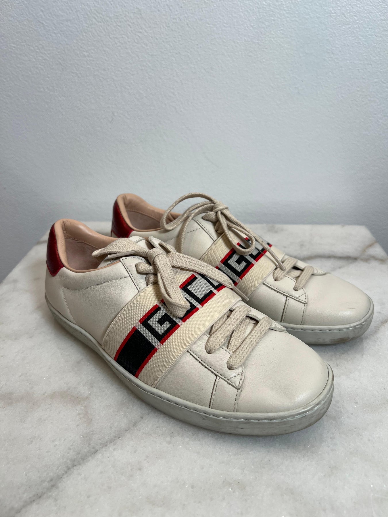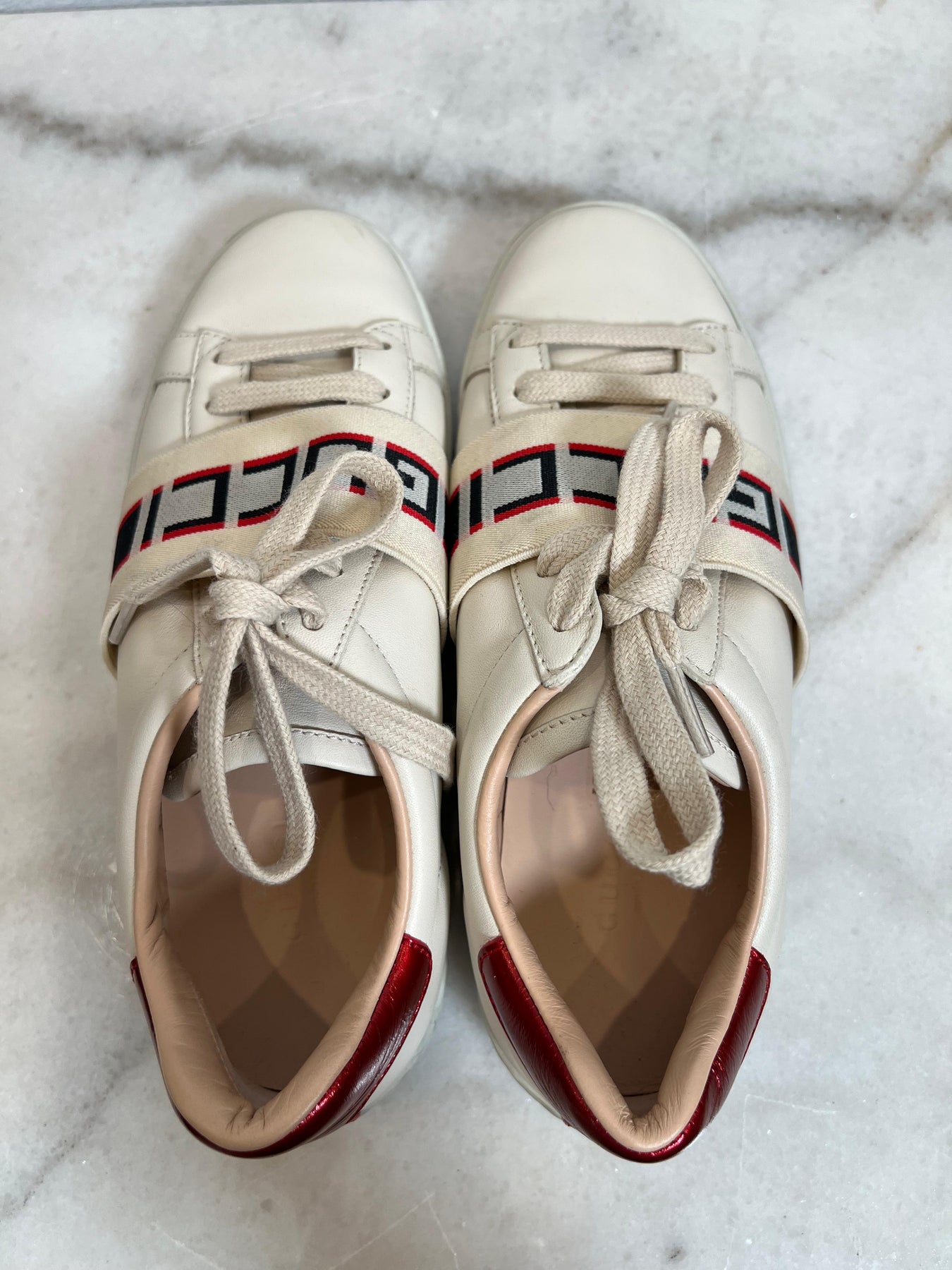 Description : White with red/ navy, with dust bag, length 24.2cm,