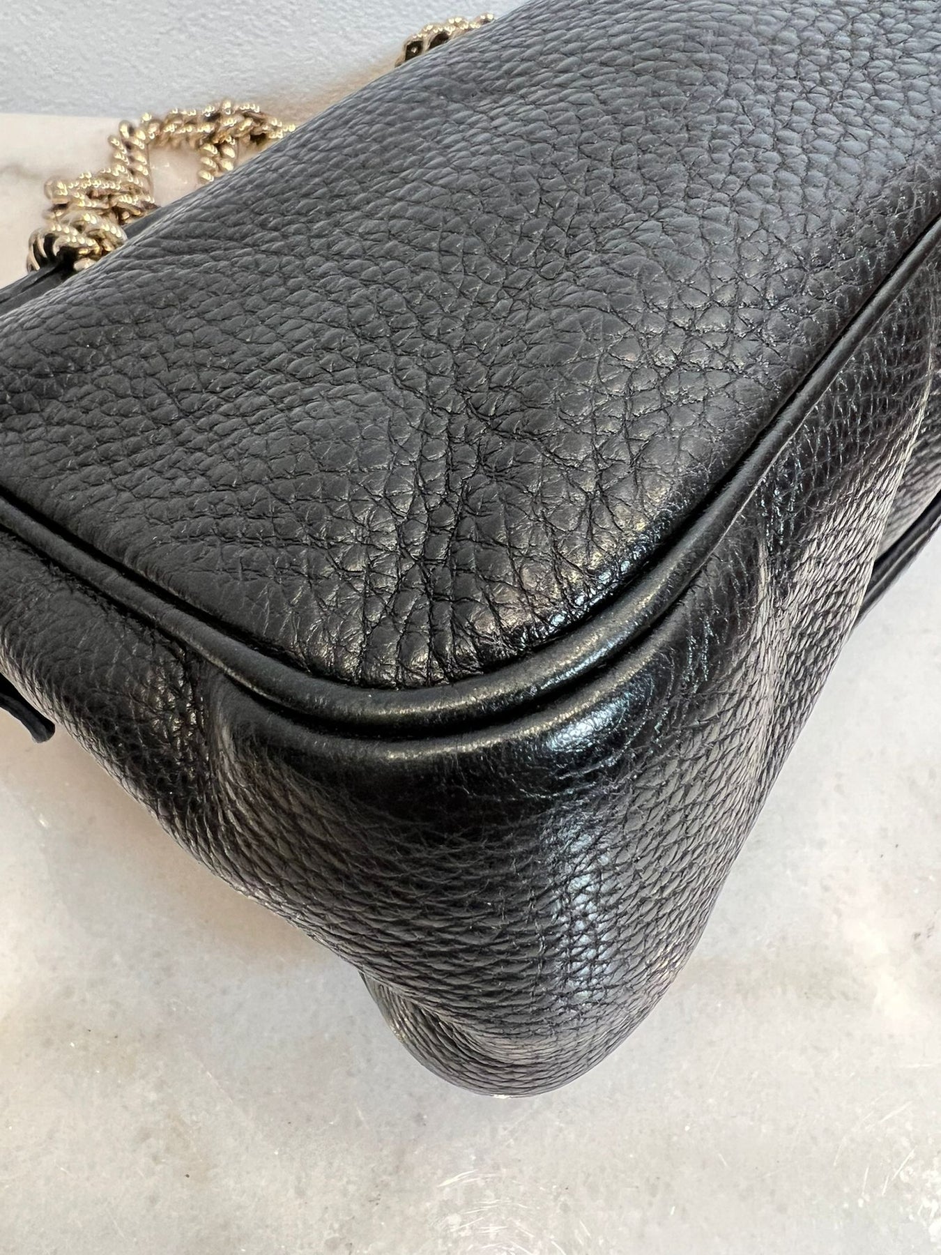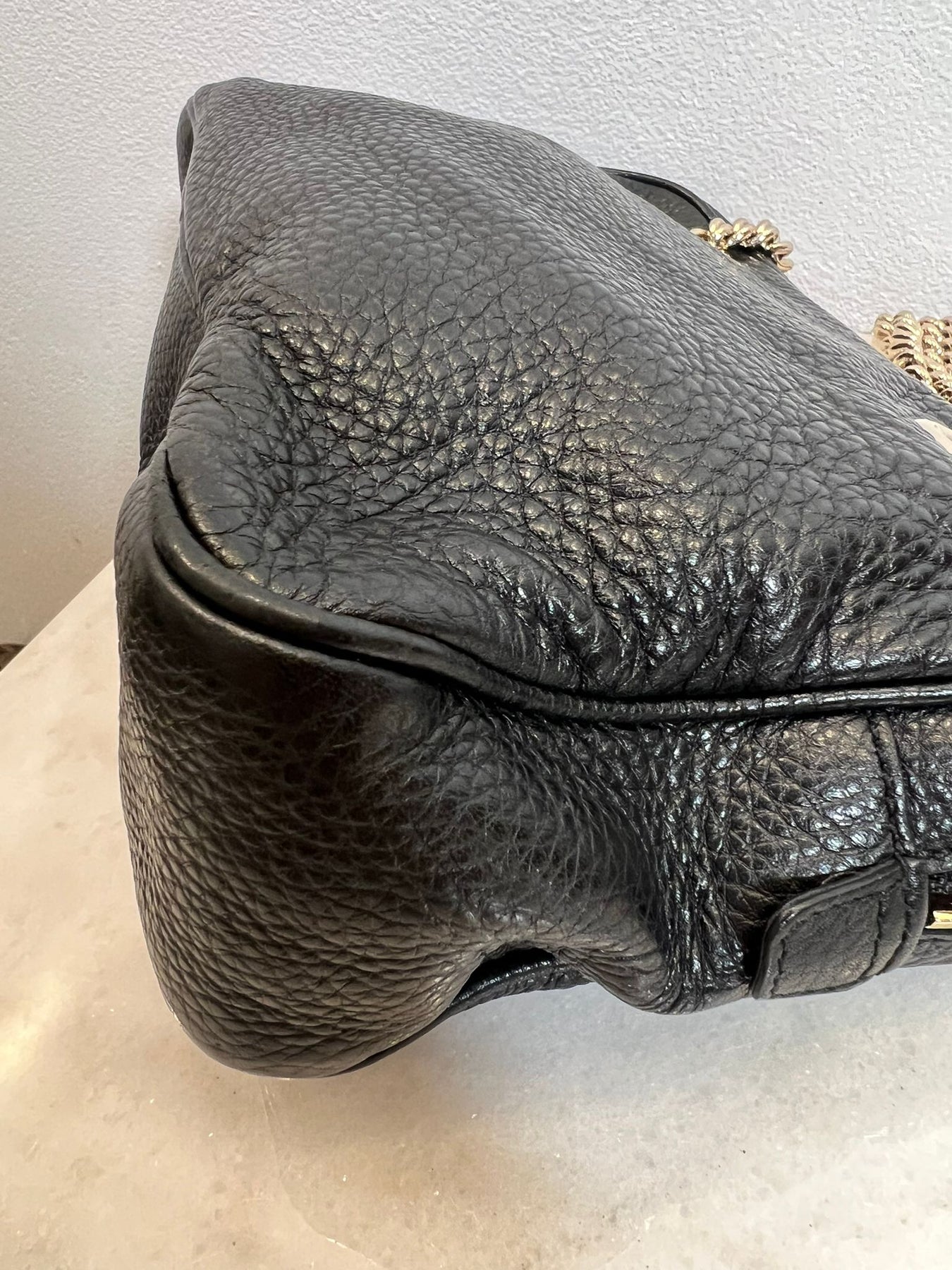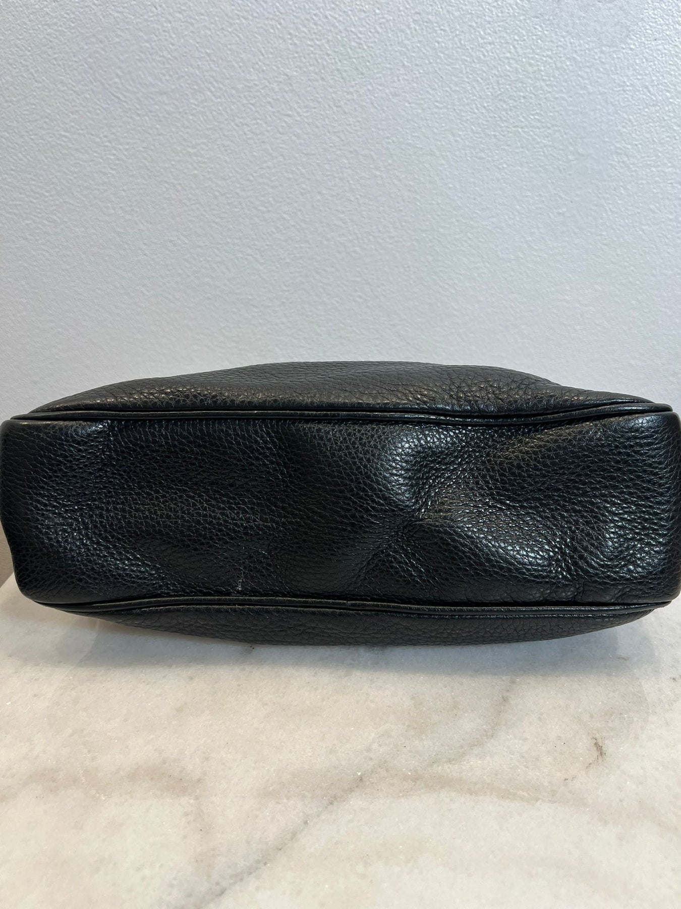 Description : Grained black leather/ silver look hardware, condition 8/10, collapsing structure, no dust bag or box, with Entrupy certificate, 27x18x7cm, handle drop 24cm