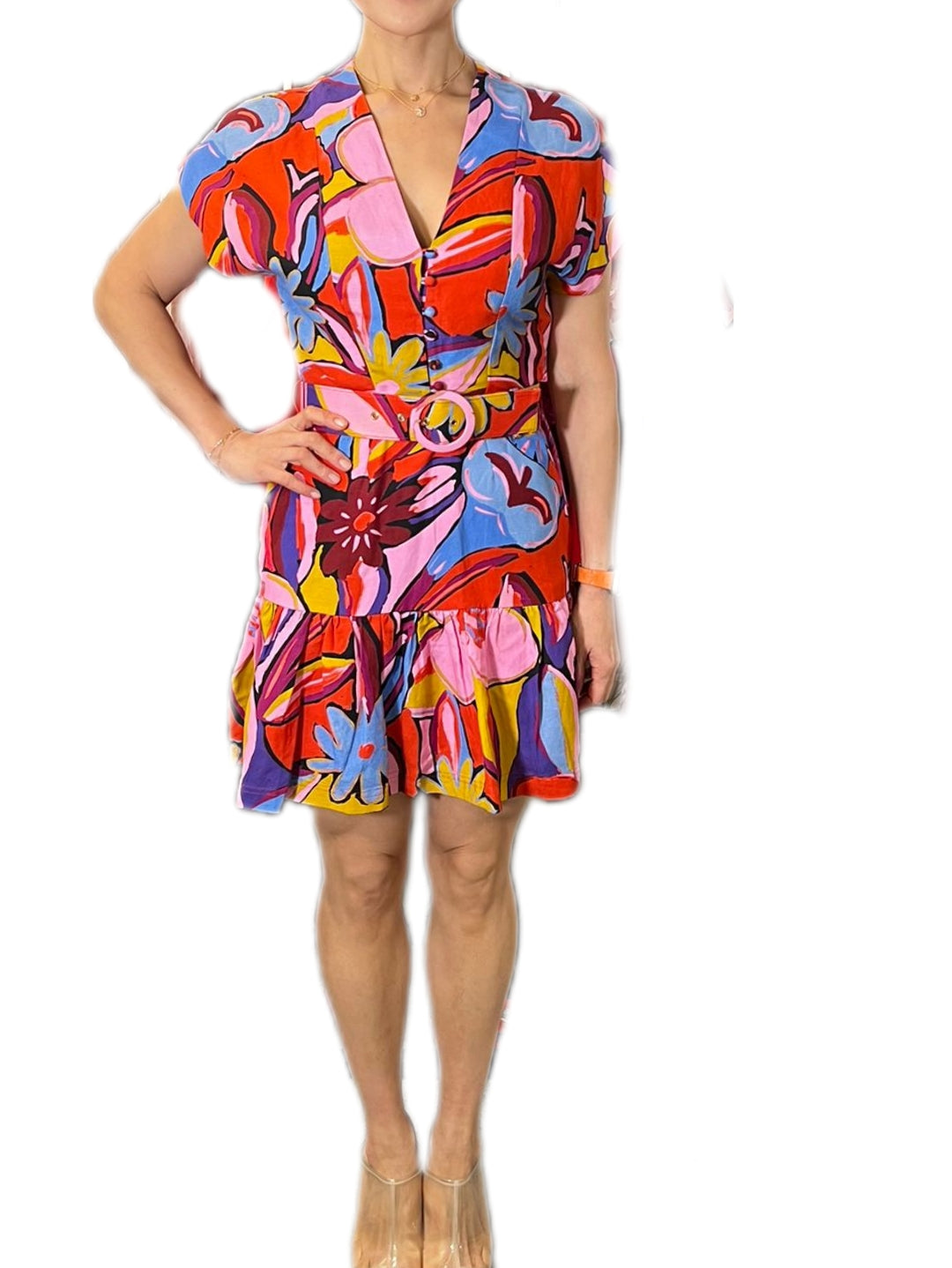 Rebecca Vallance Floral Mini Dress with Matching belt - size 8