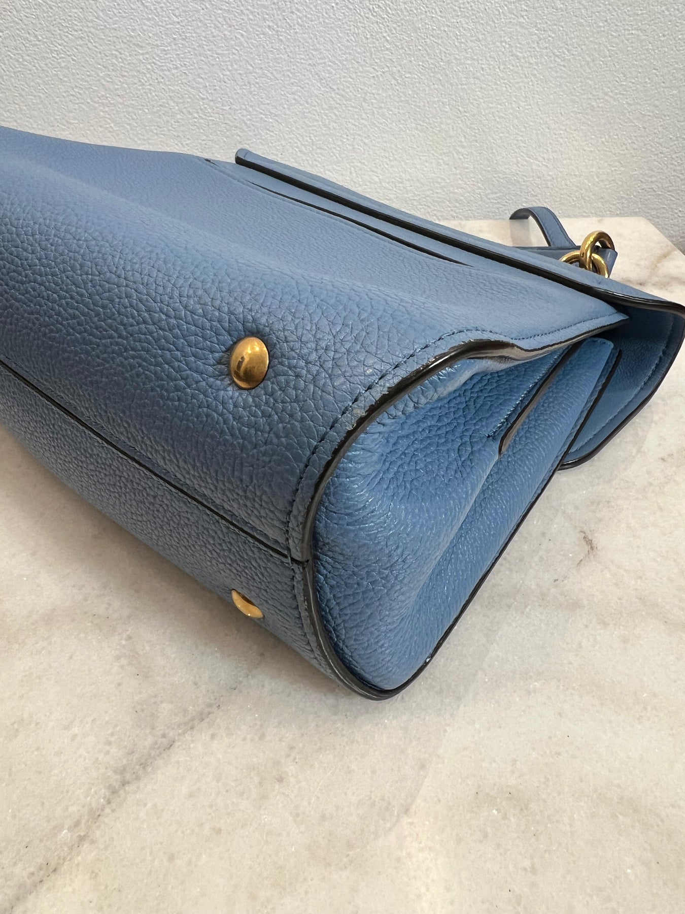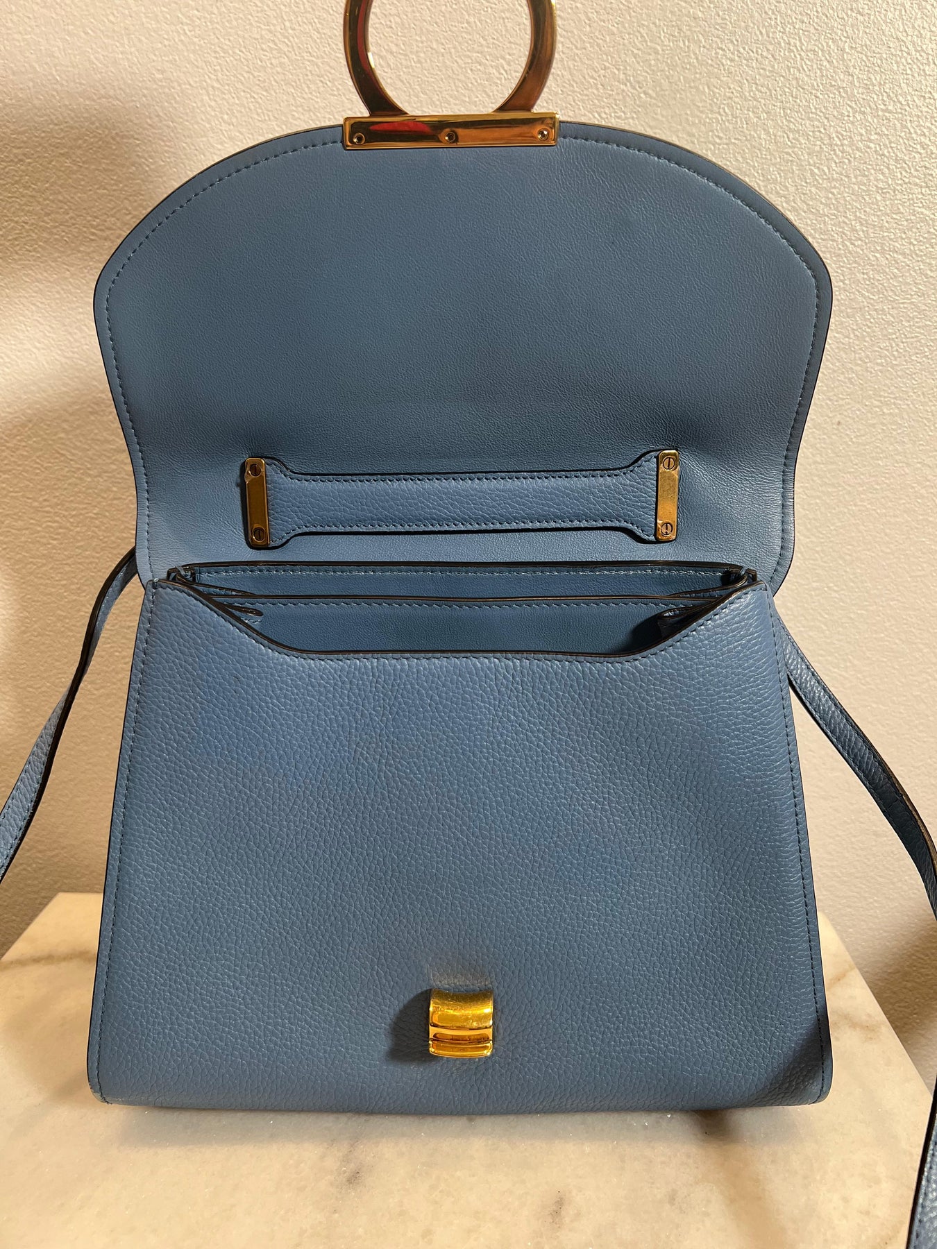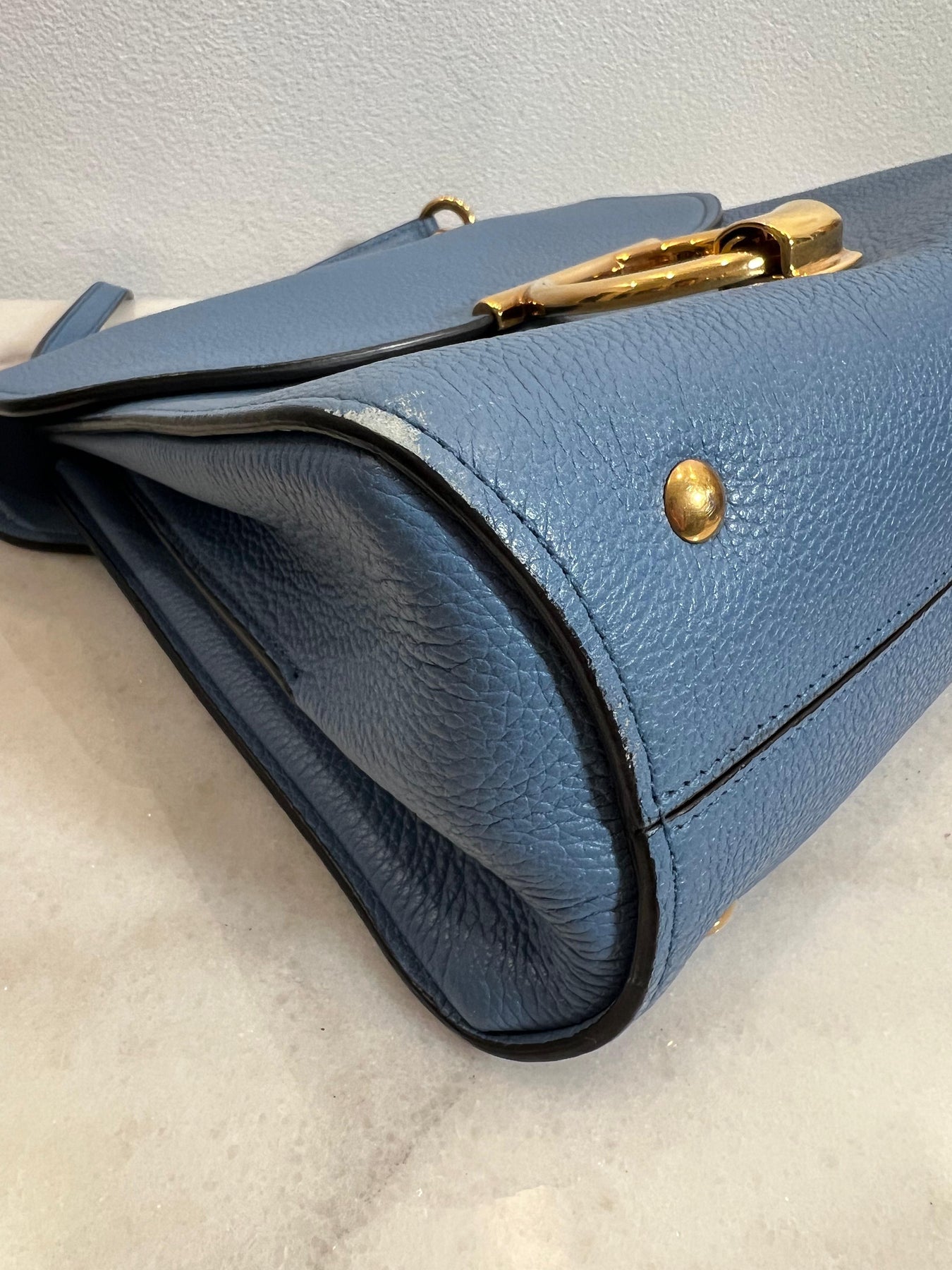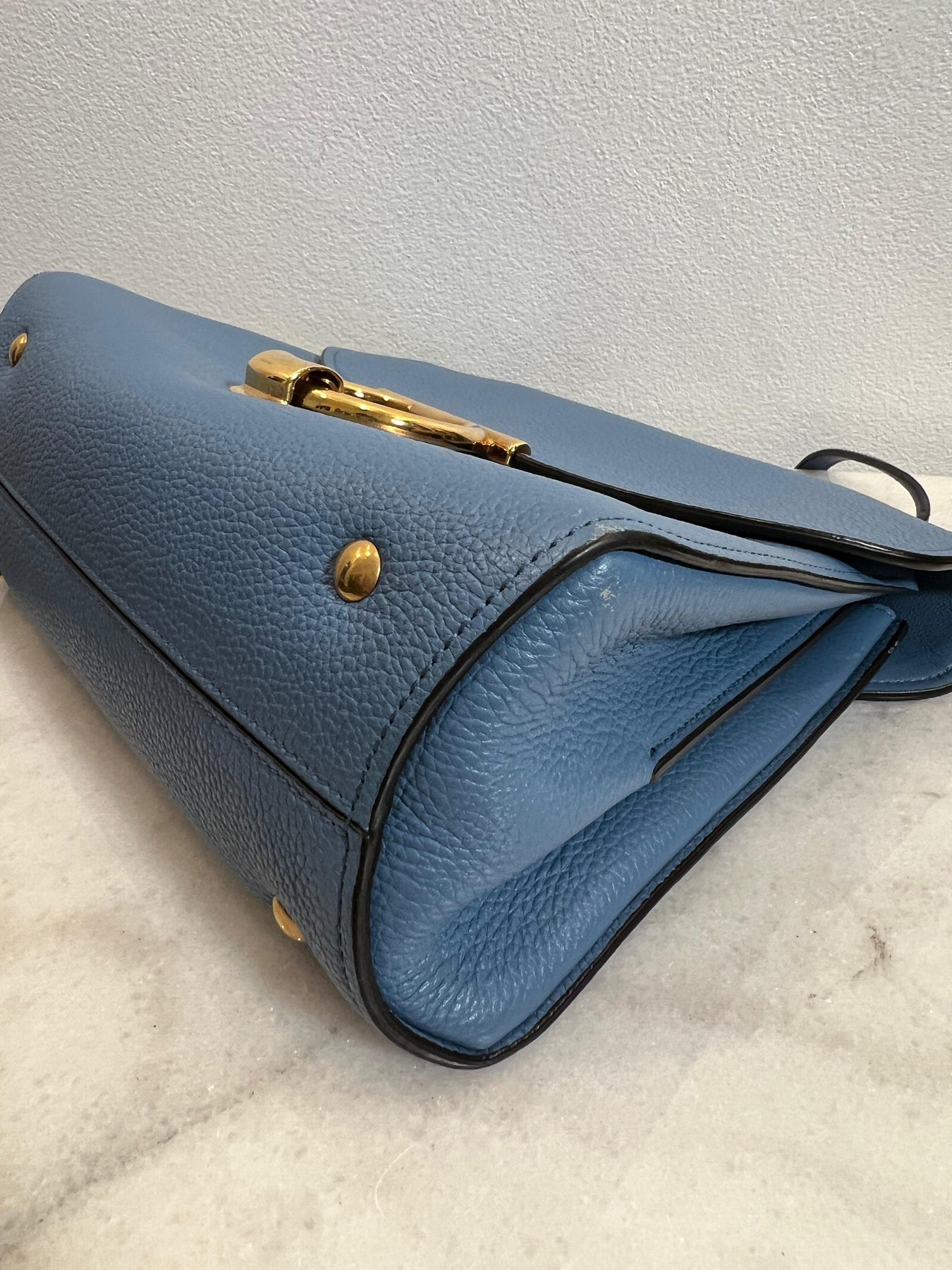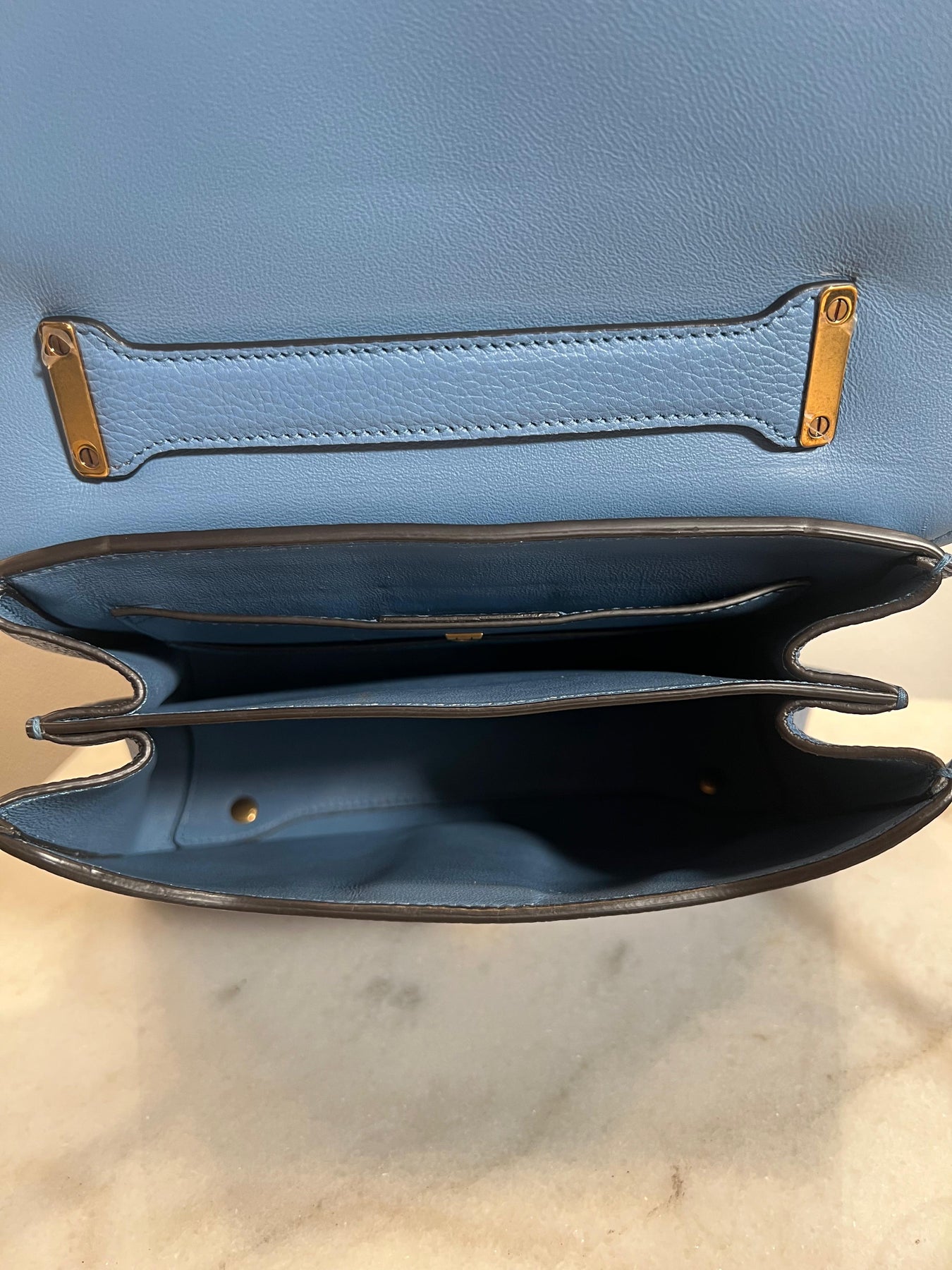 Description : 25x21x10cm, RRP $3650, with dust bag, adjustable and removablelong strap, condition 8.5/10- mils wear to base, leather peeling in interior back pocket